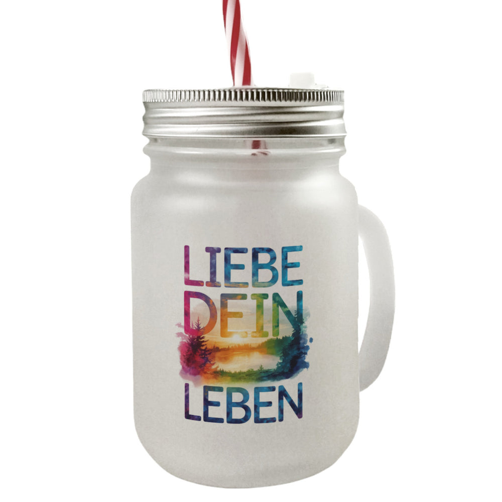 Liebe dein Leben Trinkglas mit Bambusdeckel Aquarell Design