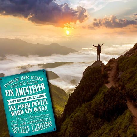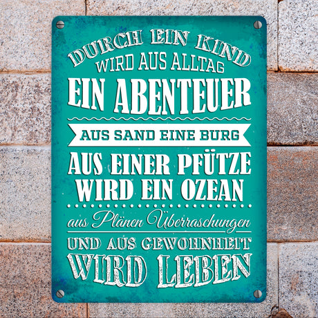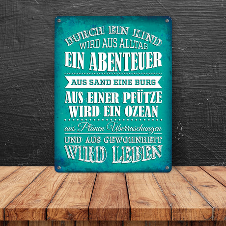 €14,95Grundpreis /Nicht verfügbar Metallschild mit Spruch: Durch ein Kind wir aus Alltag ...