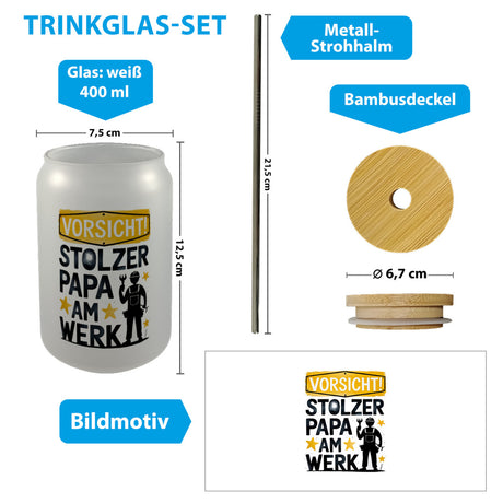 €3,95Grundpreis /Nicht verfügbarAuf LagerVorsicht! Stolzer Papa am Werk Trinkglas mit Bambusdeckel