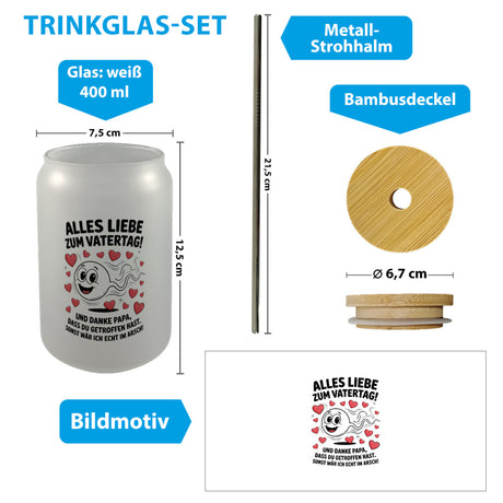 €9,95Grundpreis /Nicht verfügbarAuf LagerAlles Liebe zum Vatertag Trinkglas mit Bambusdeckel Spermien Cartoon mit Herzen