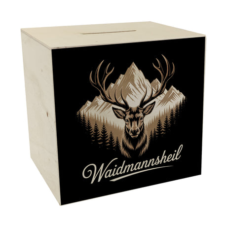 Ab €12,95Grundpreis /Nicht verfügbarAuf LagerHirsch vor Bergkulisse Waidmannsheil Spardose für Jäger