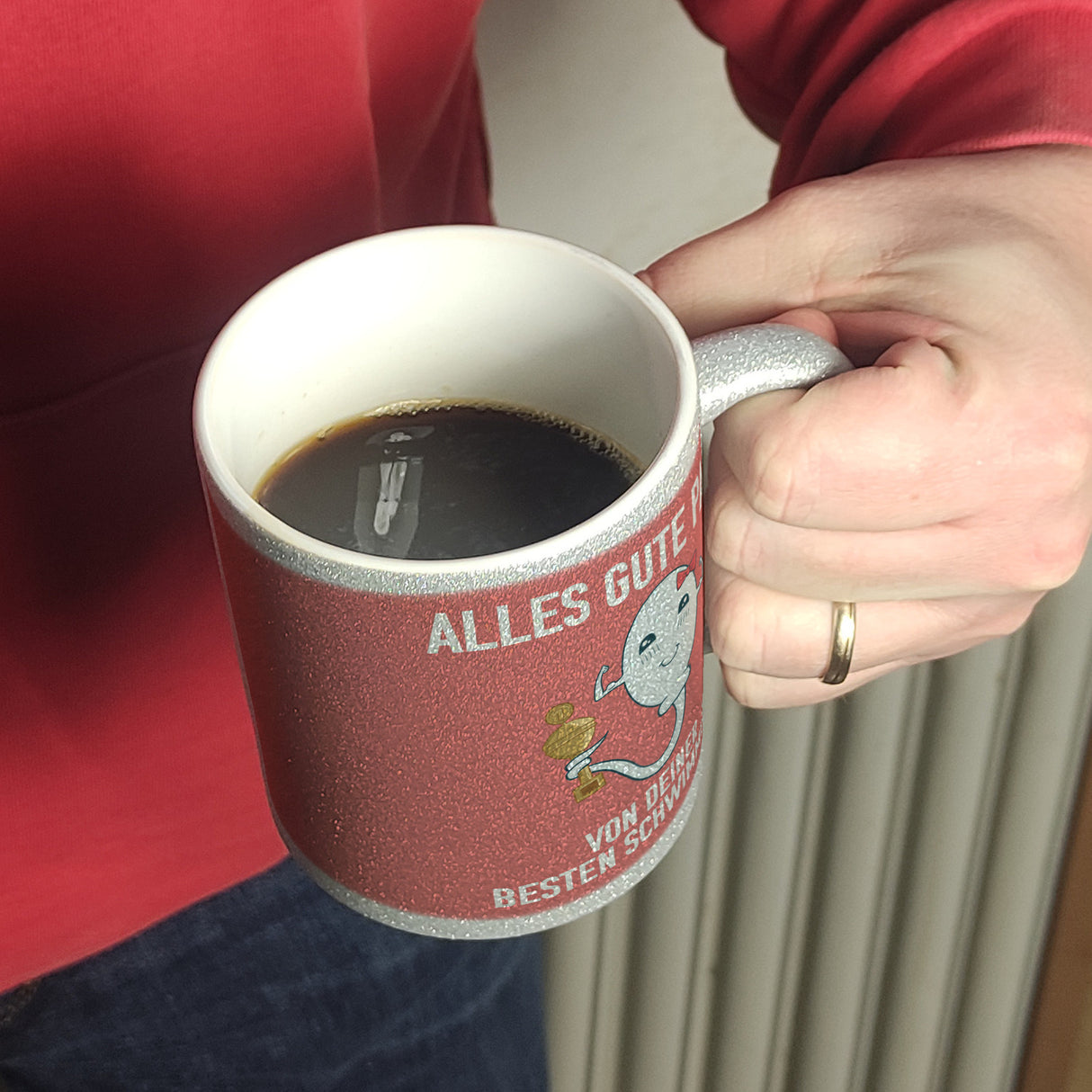 - Erhältlich in unterschiedlichen Varianten: Als weiße Standardtasse, mit farbigem Henkel und Innenseite, als edle Glastasse oder in der exklusiven Silberedition mit Glitzereffekt. Mit Sorgfalt in Handarbeit hergestellt in unserer Tassen-Manufaktur in Deutschland.