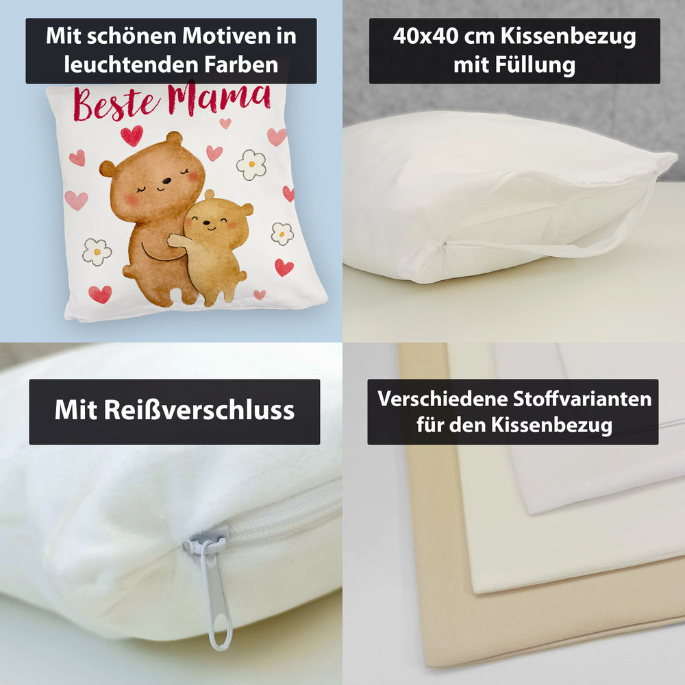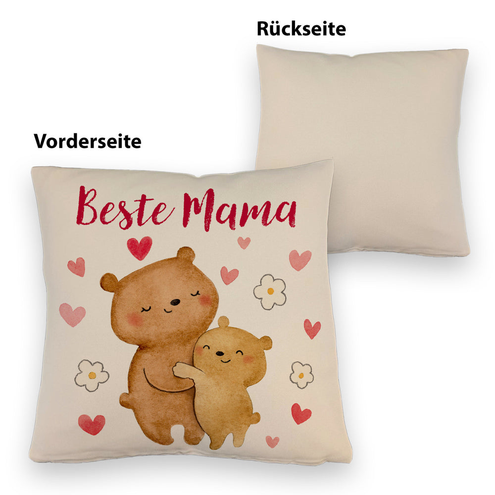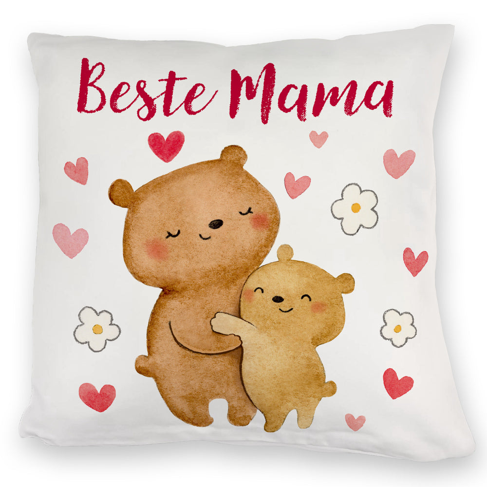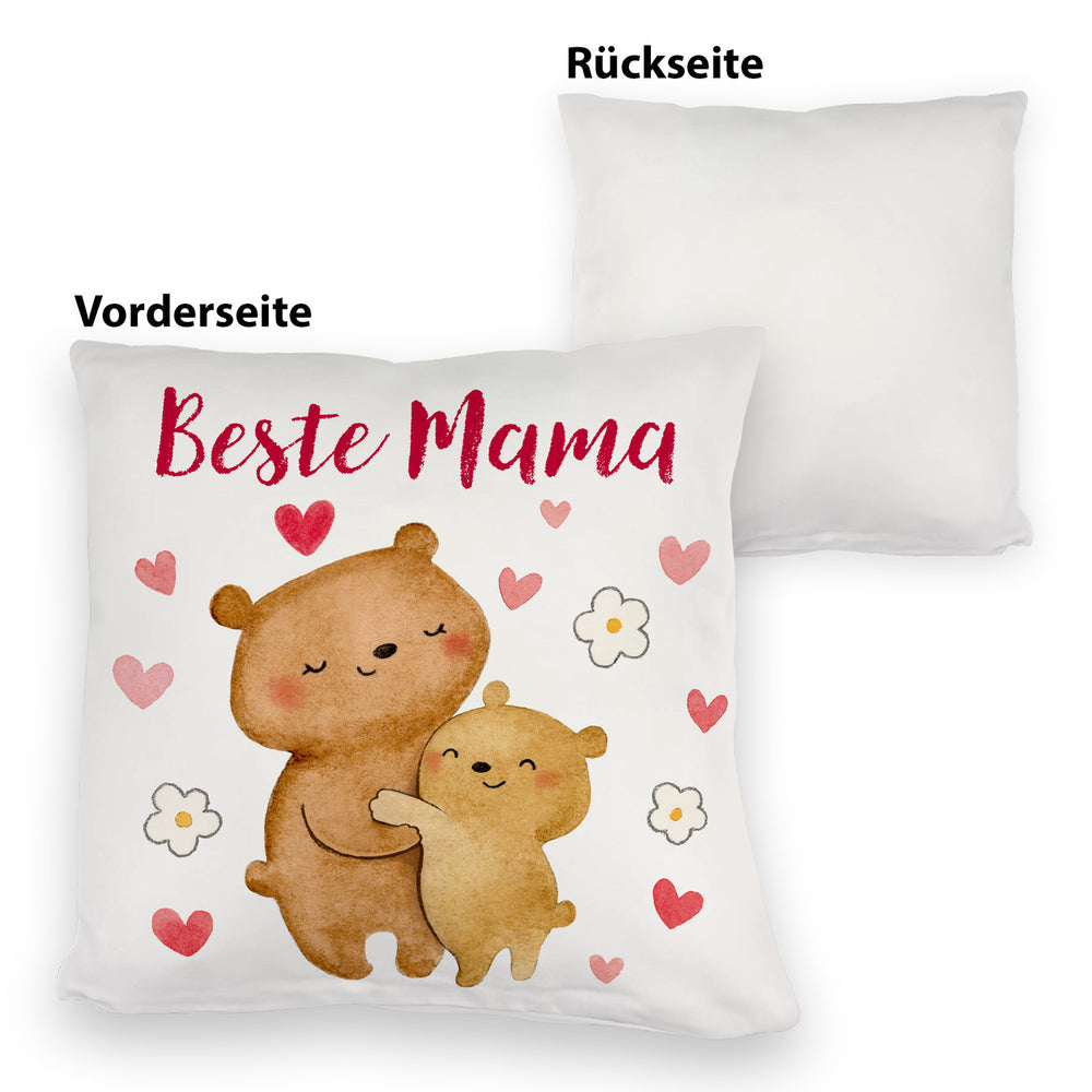 • 1x Bären Mutter und Kind Kissen mit Spruch Beste Mama in der gewählten Ausführung