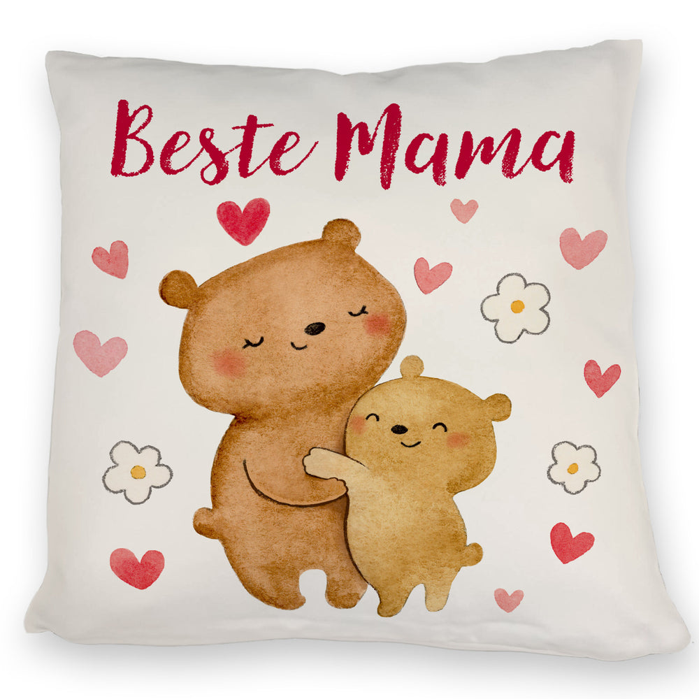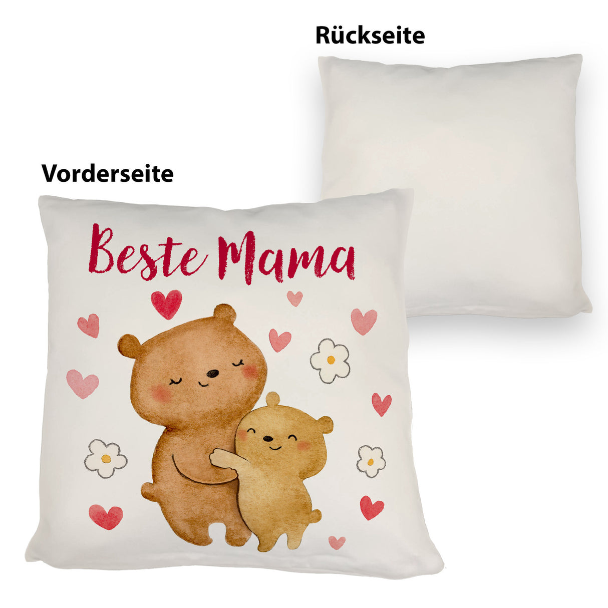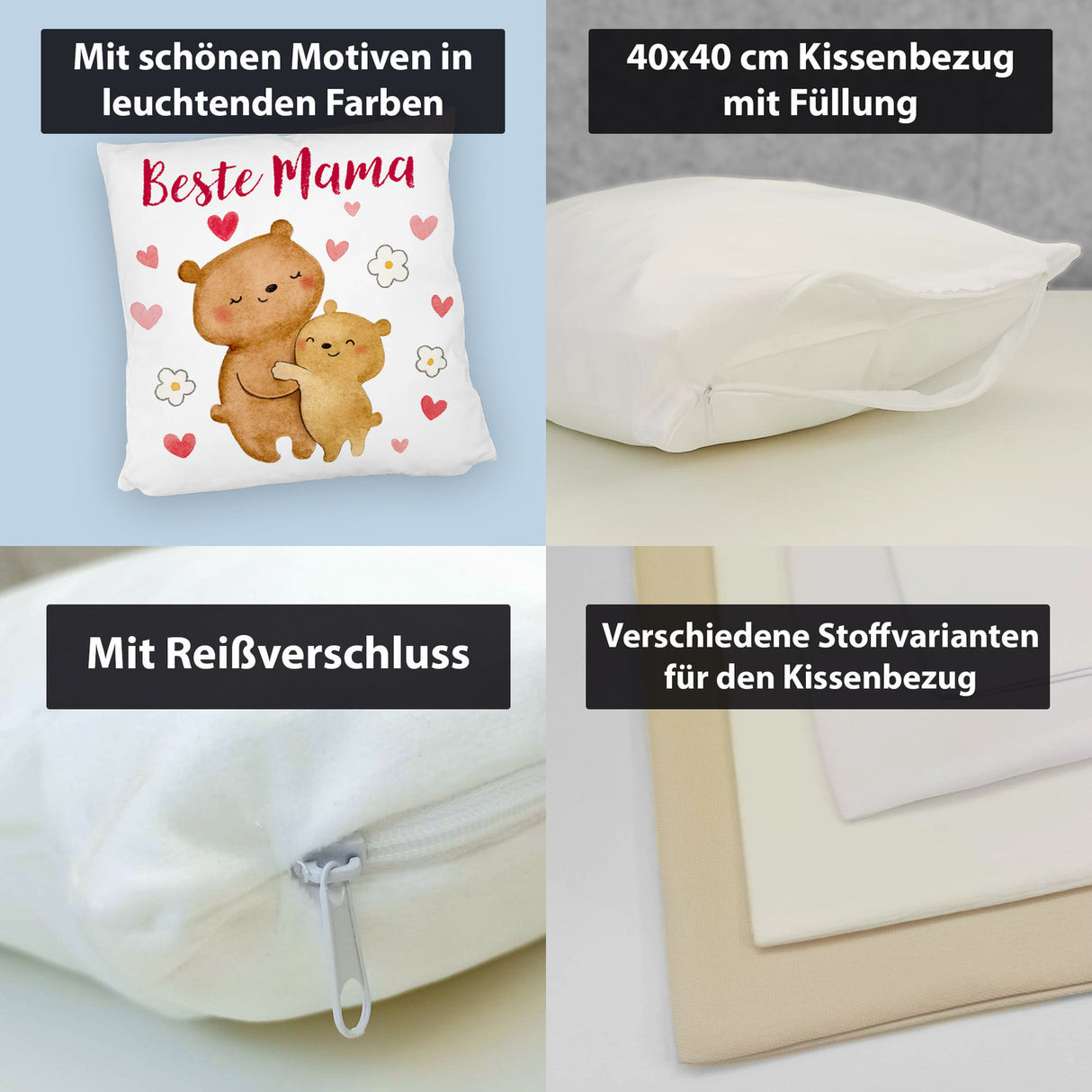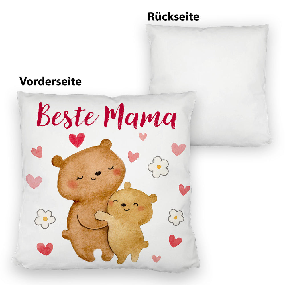 • 1x Bären Mutter und Kind Kissen mit Spruch Beste Mama in der gewählten Ausführung