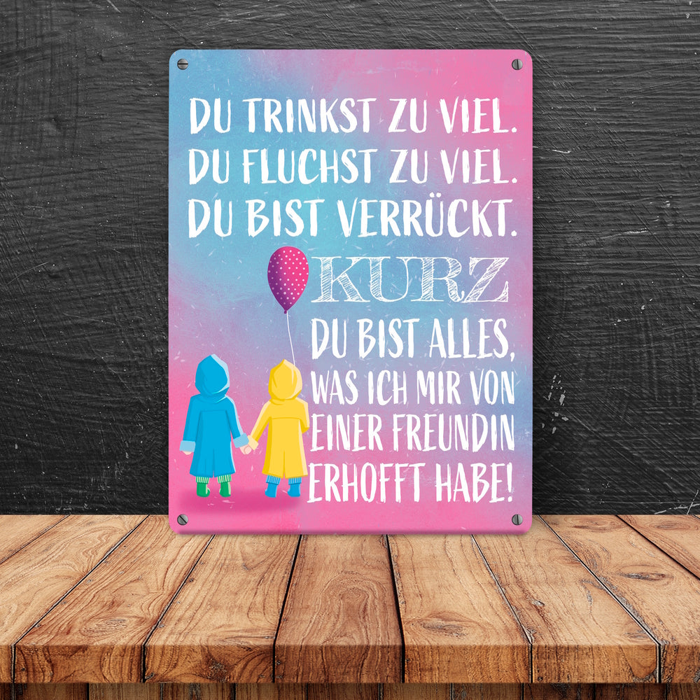 - 1x Beste Freundin Metallschild mit verrücktem Spruch in der gewählten Größe