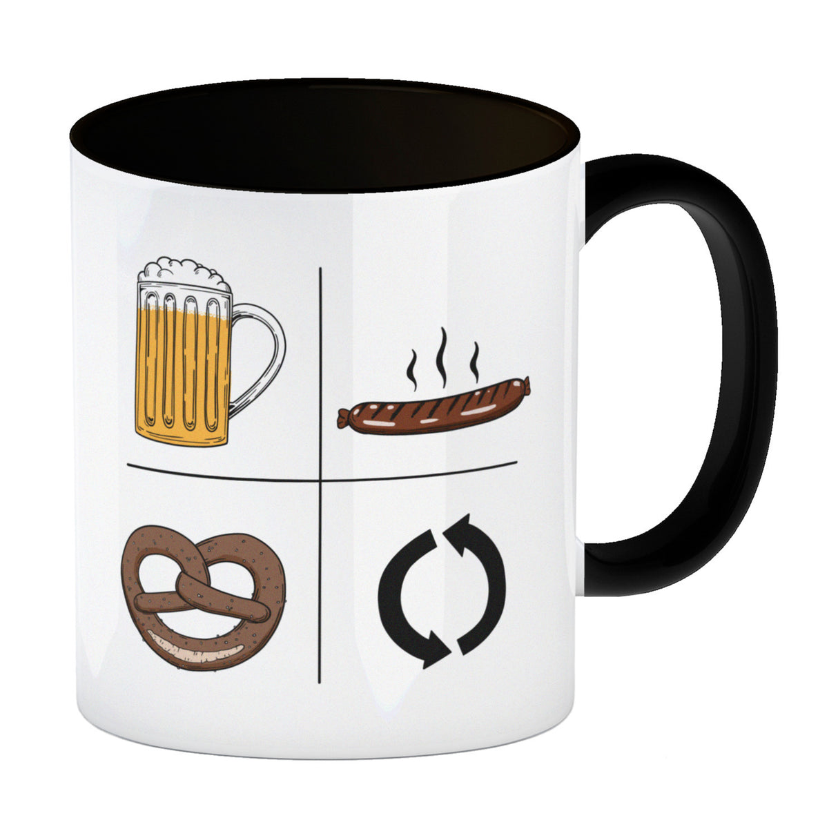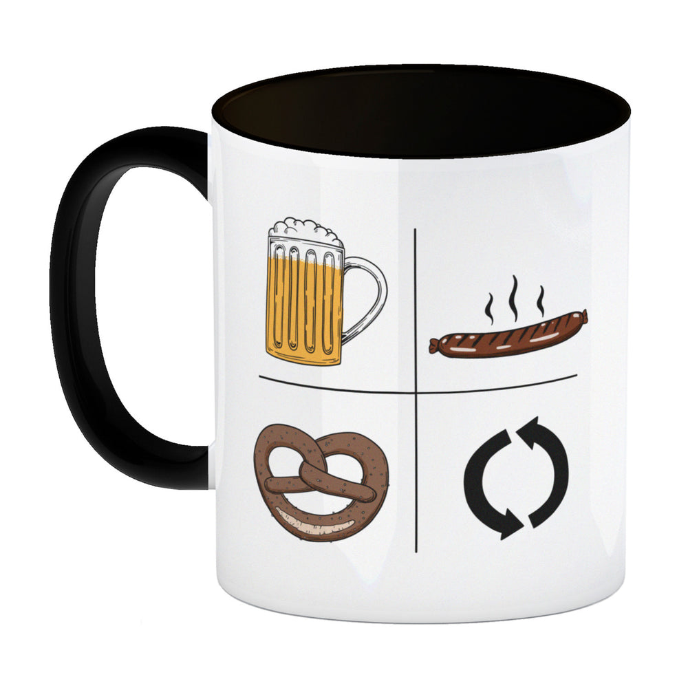 Bier, Wurst, Brezel, Repeat Kaffeebecher
