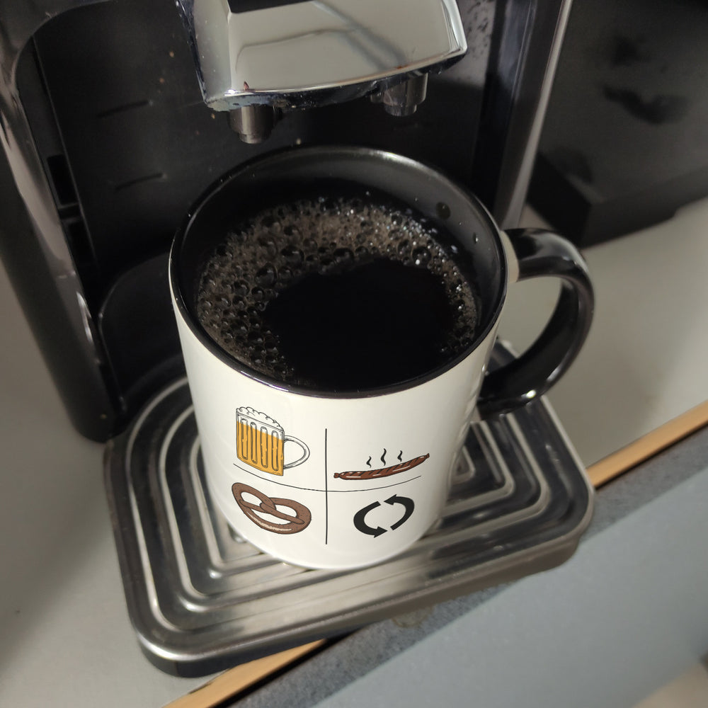 Bier, Wurst, Brezel, Repeat Kaffeebecher - Weiß ist auf Lager und wird versandt, sobald es wieder verfügbar ist