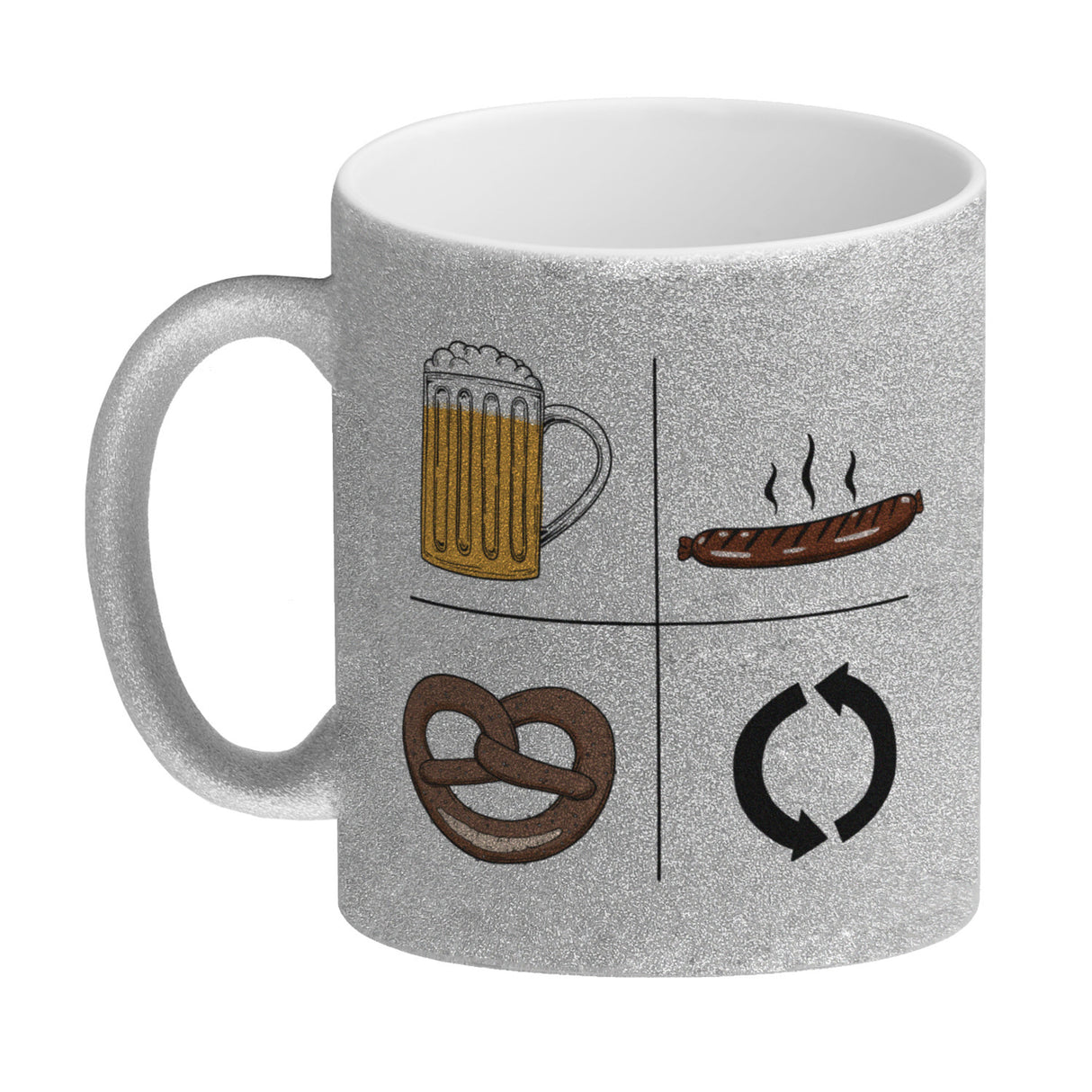 - Erhältlich in unterschiedlichen Varianten: Als weiße Standardtasse, mit farbigem Henkel und Innenseite, als edle Glastasse oder in der exklusiven Silberedition mit Glitzereffekt. Mit Sorgfalt in Handarbeit hergestellt in unserer Tassen-Manufaktur in Deutschland.