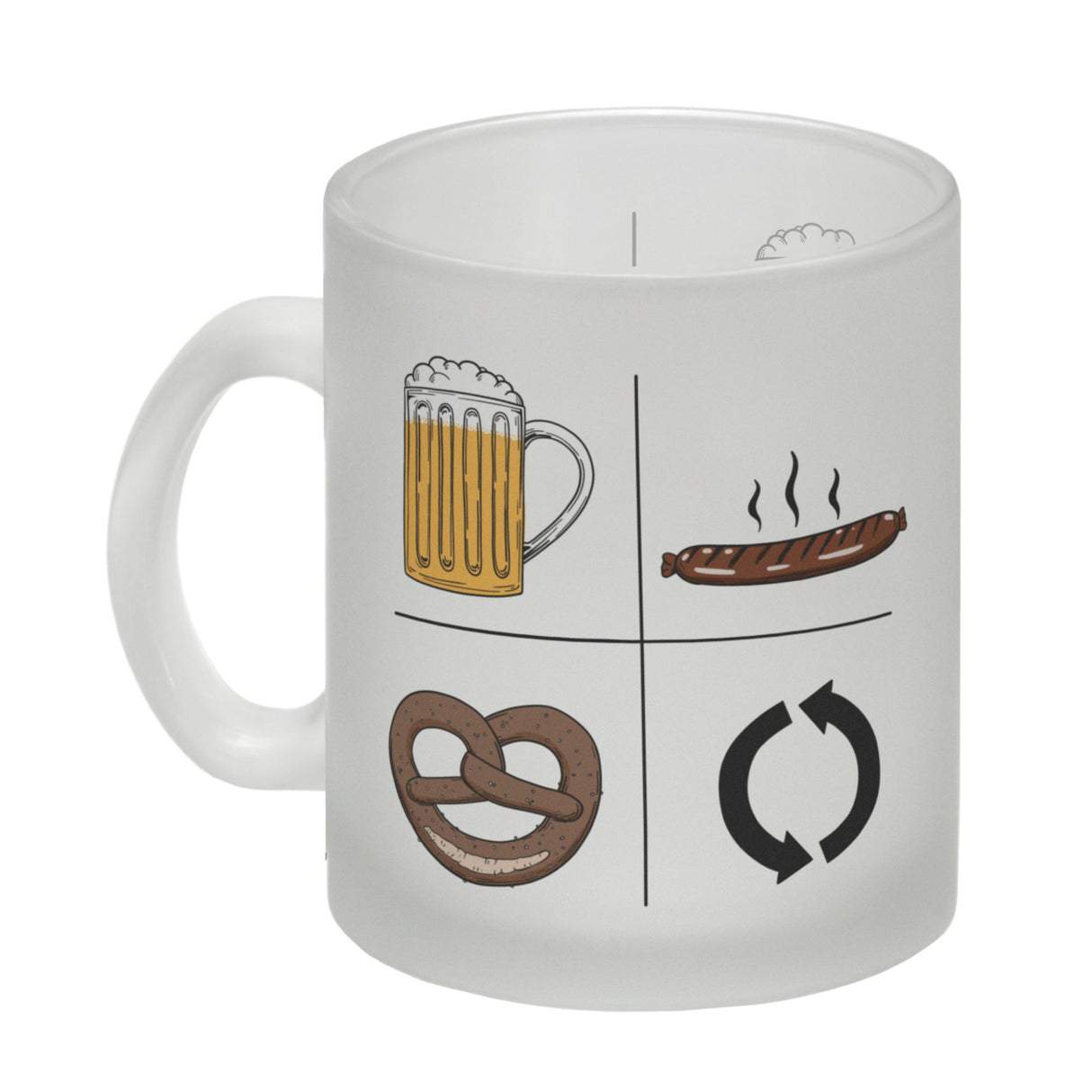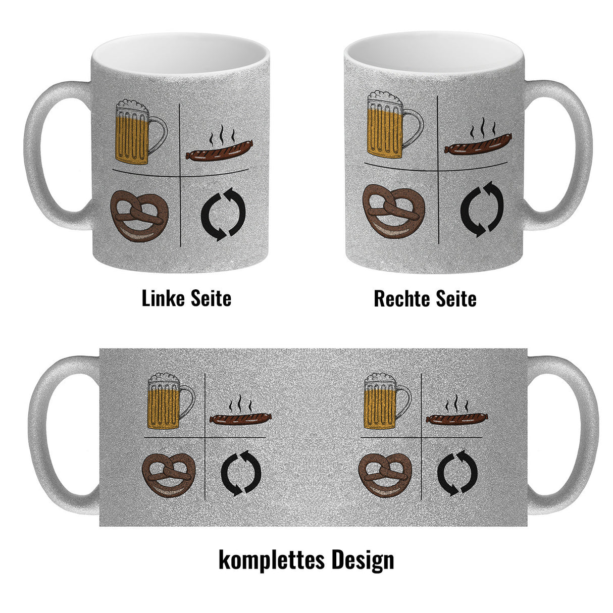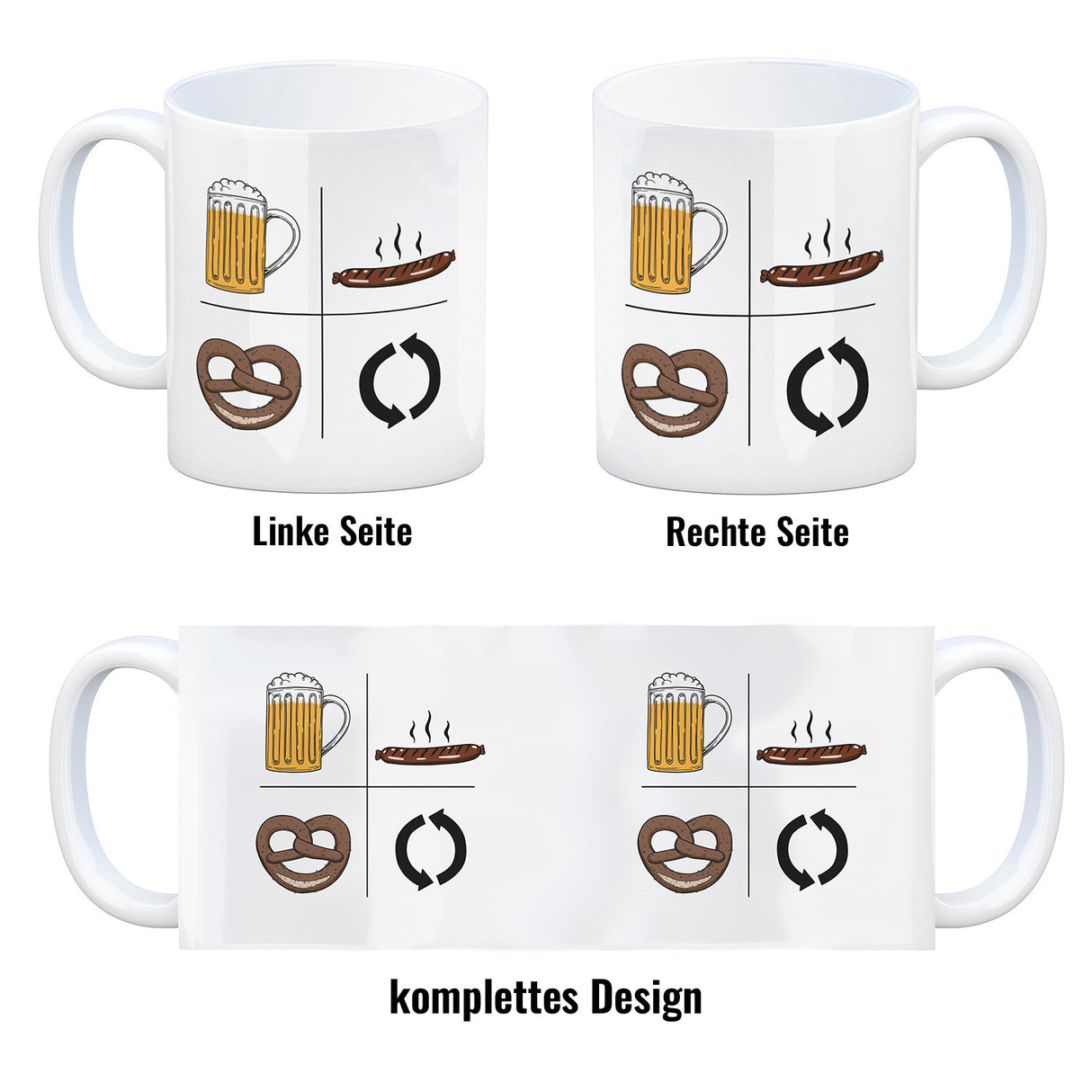 - 1x Bier, Wurst, Brezel, Repeat Kaffeebecher in der gewählten Ausführung