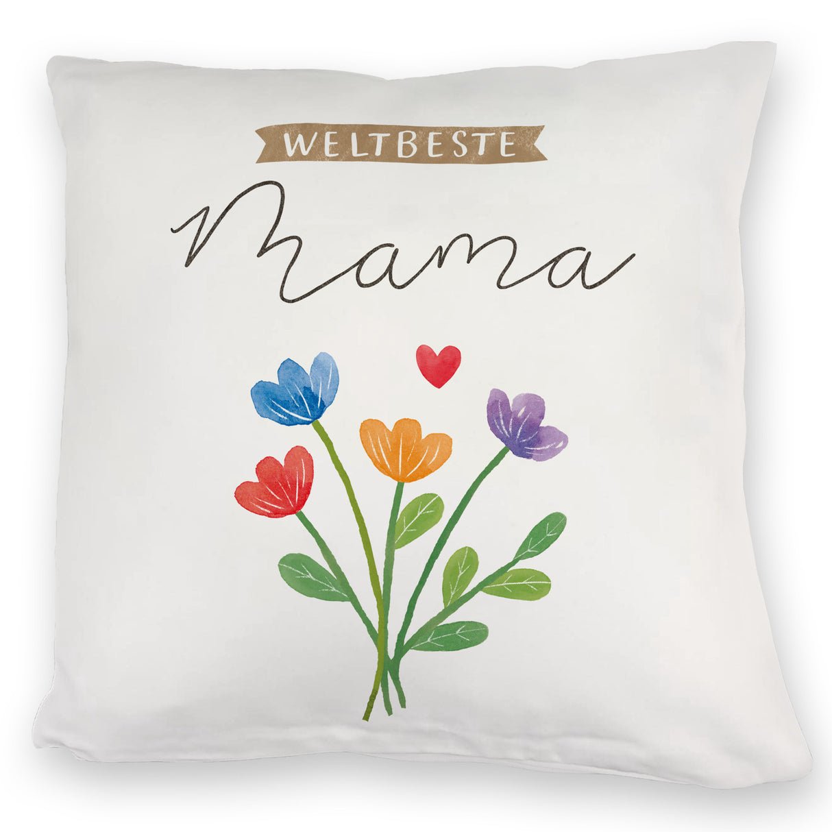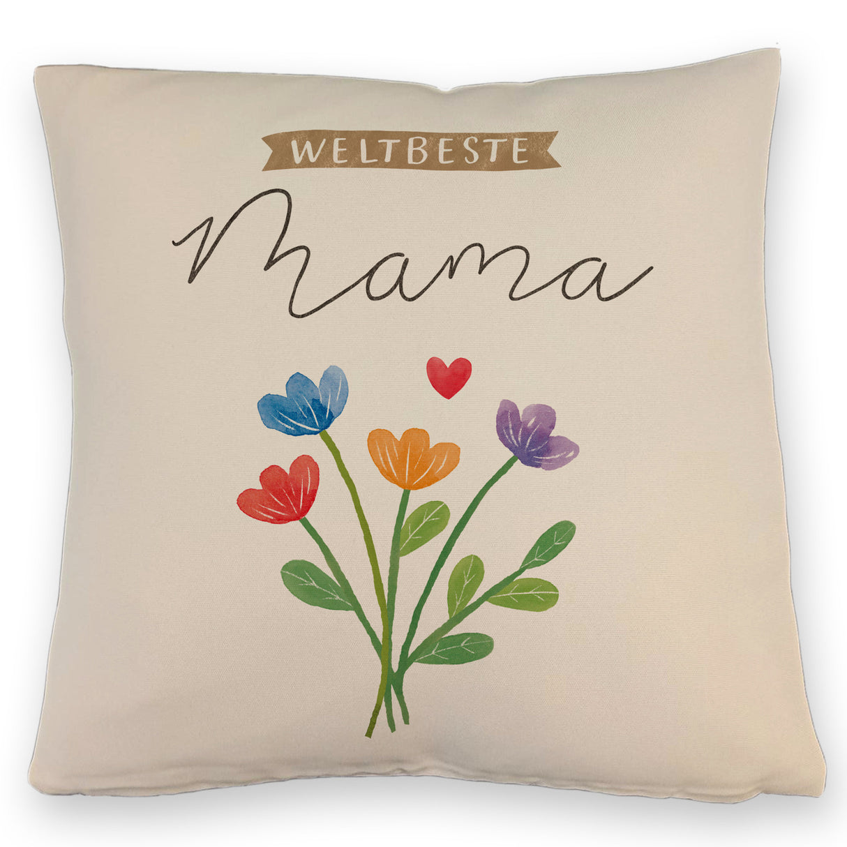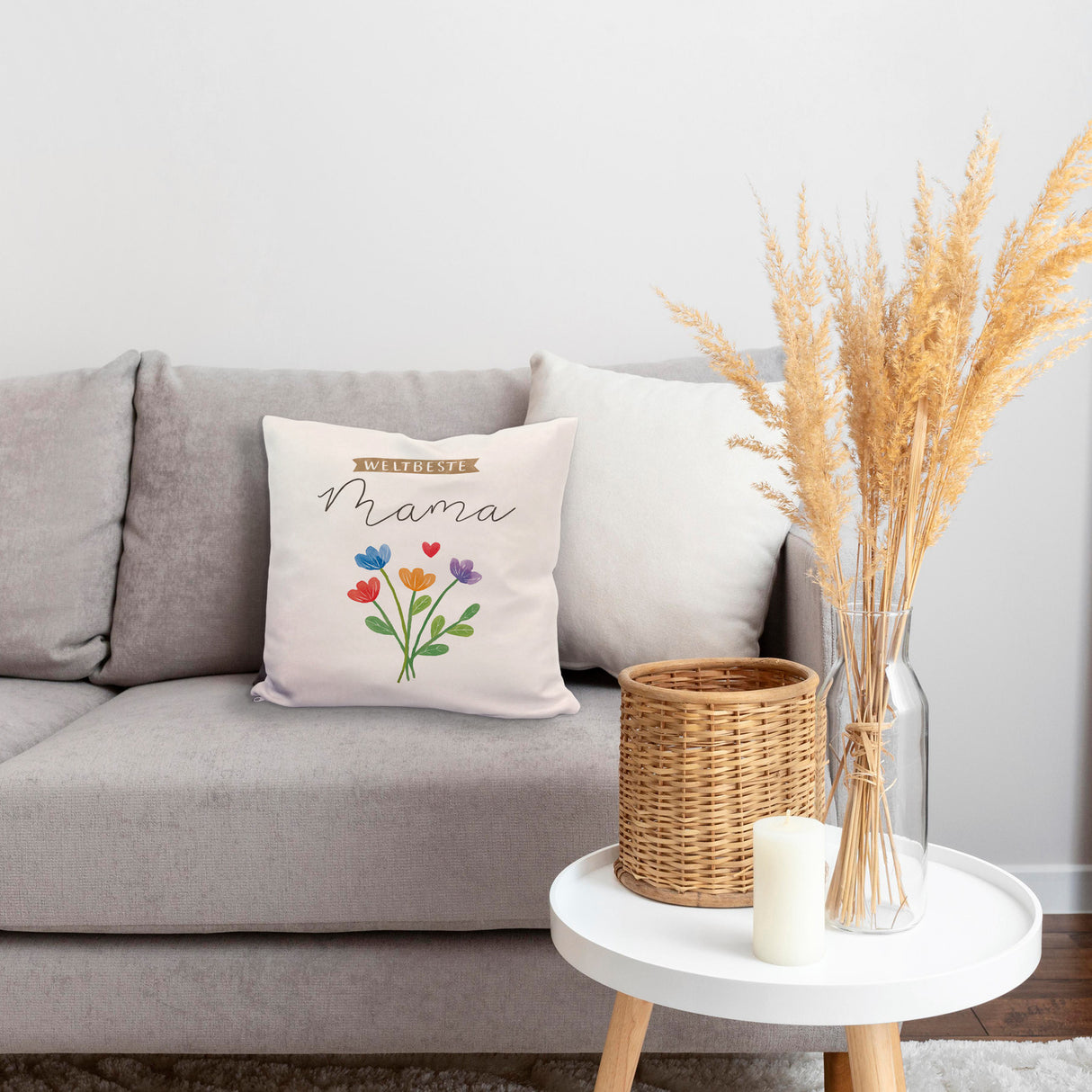 Blumenstrauß Kissen mit Spruch Weltbeste Mama