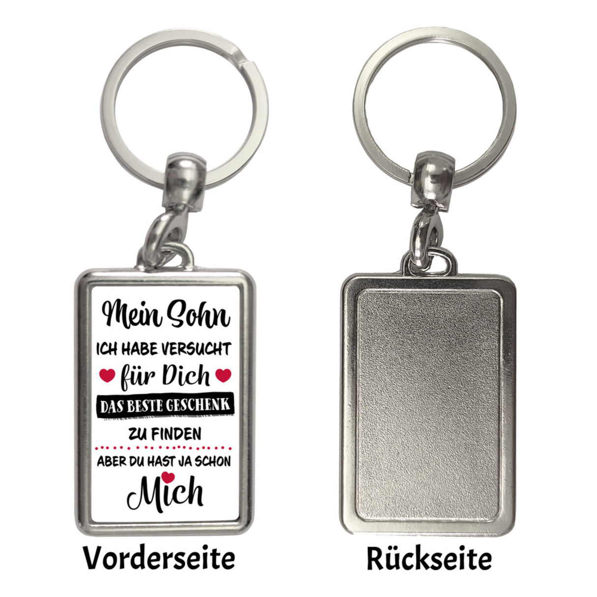 | Mein Sohn/Standard | ![]() | inkl. Schlüsselring aus Metall / Motivgröße ca. 4x2,5 cm |