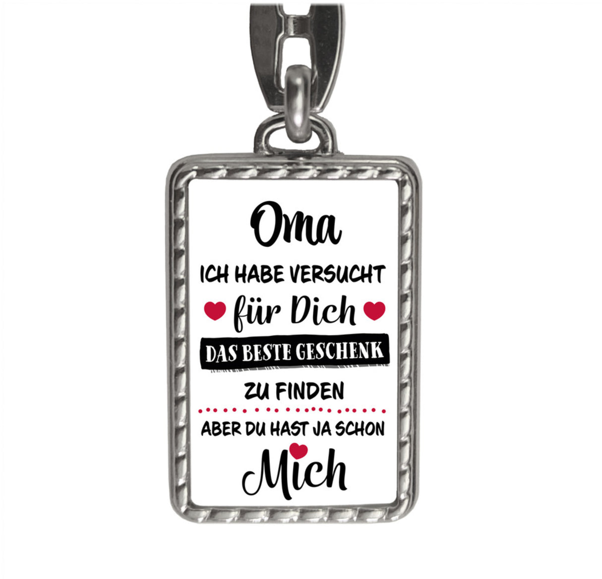| Oma/Standard | ![]() | inkl. Schlüsselring aus Metall / Motivgröße ca. 4x2,5 cm |
