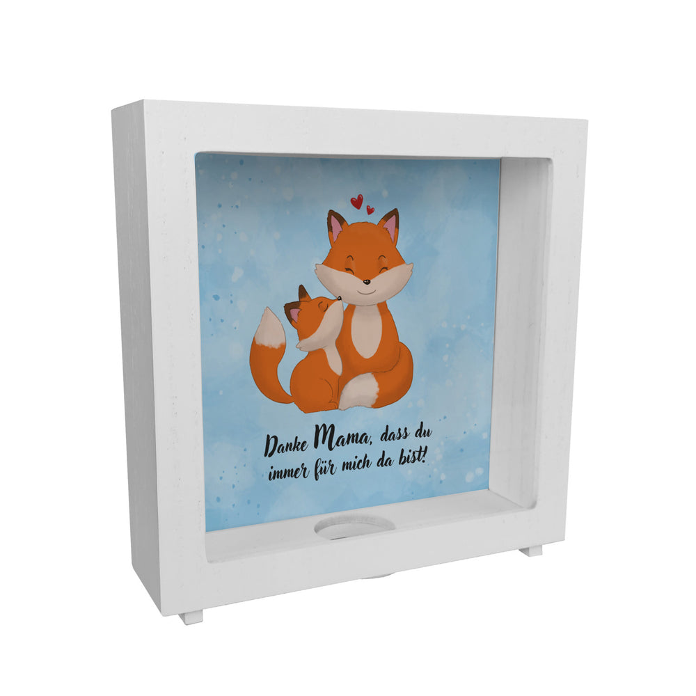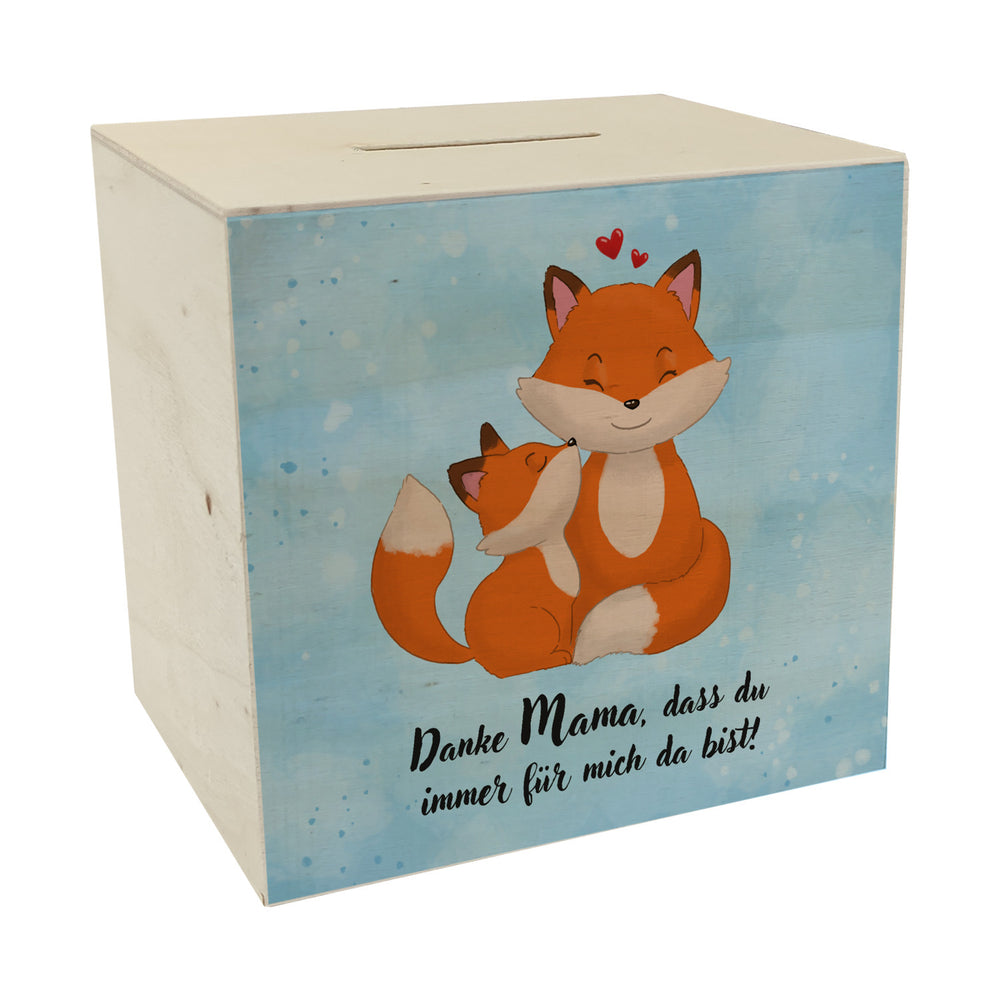 - 1x Danke Mama, dass du für mich da bist Spardose mit Fuchs in der gewählten Ausführung