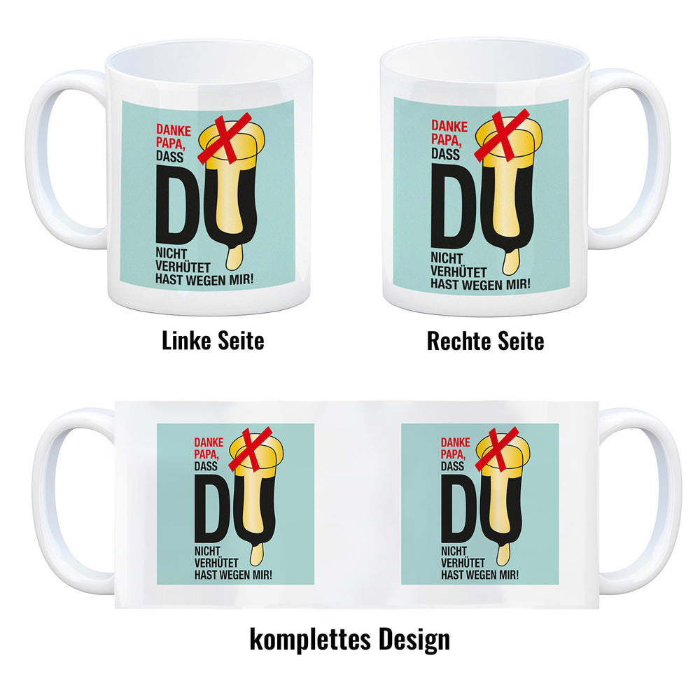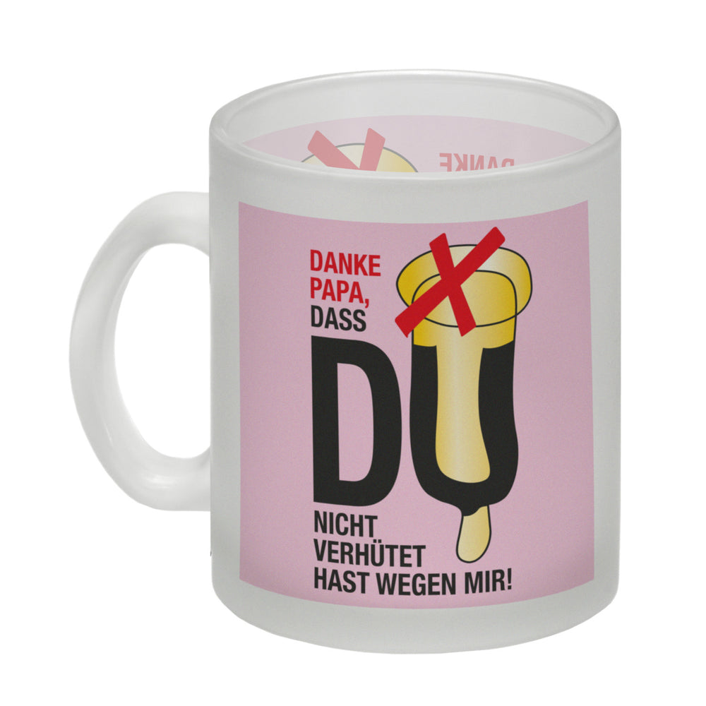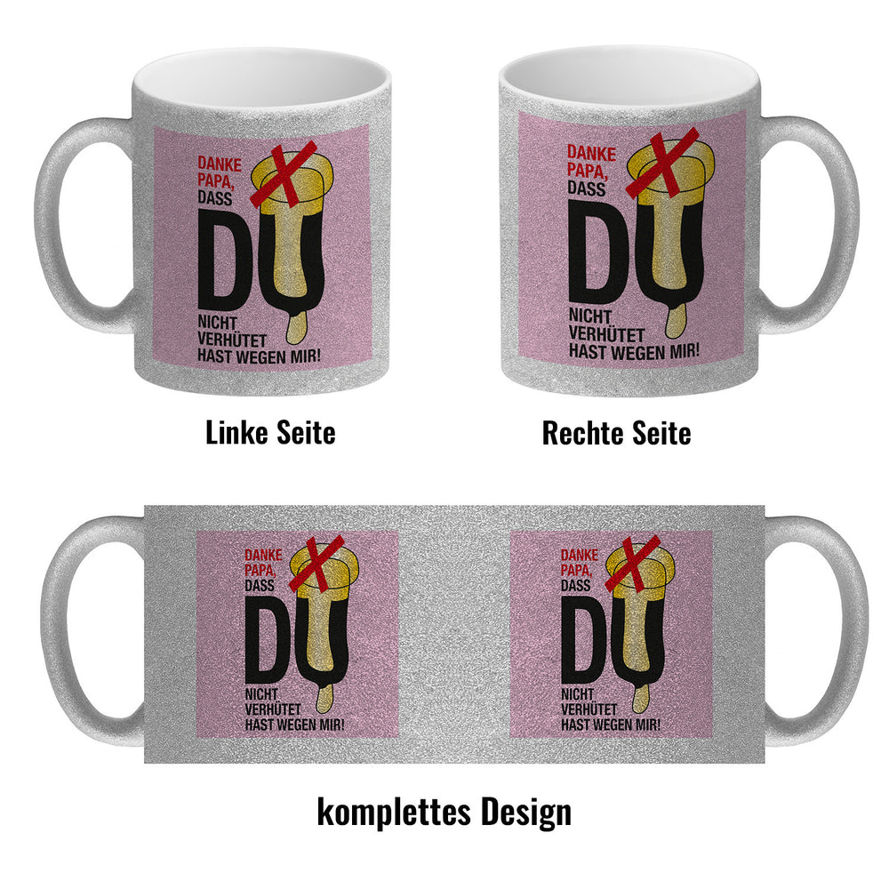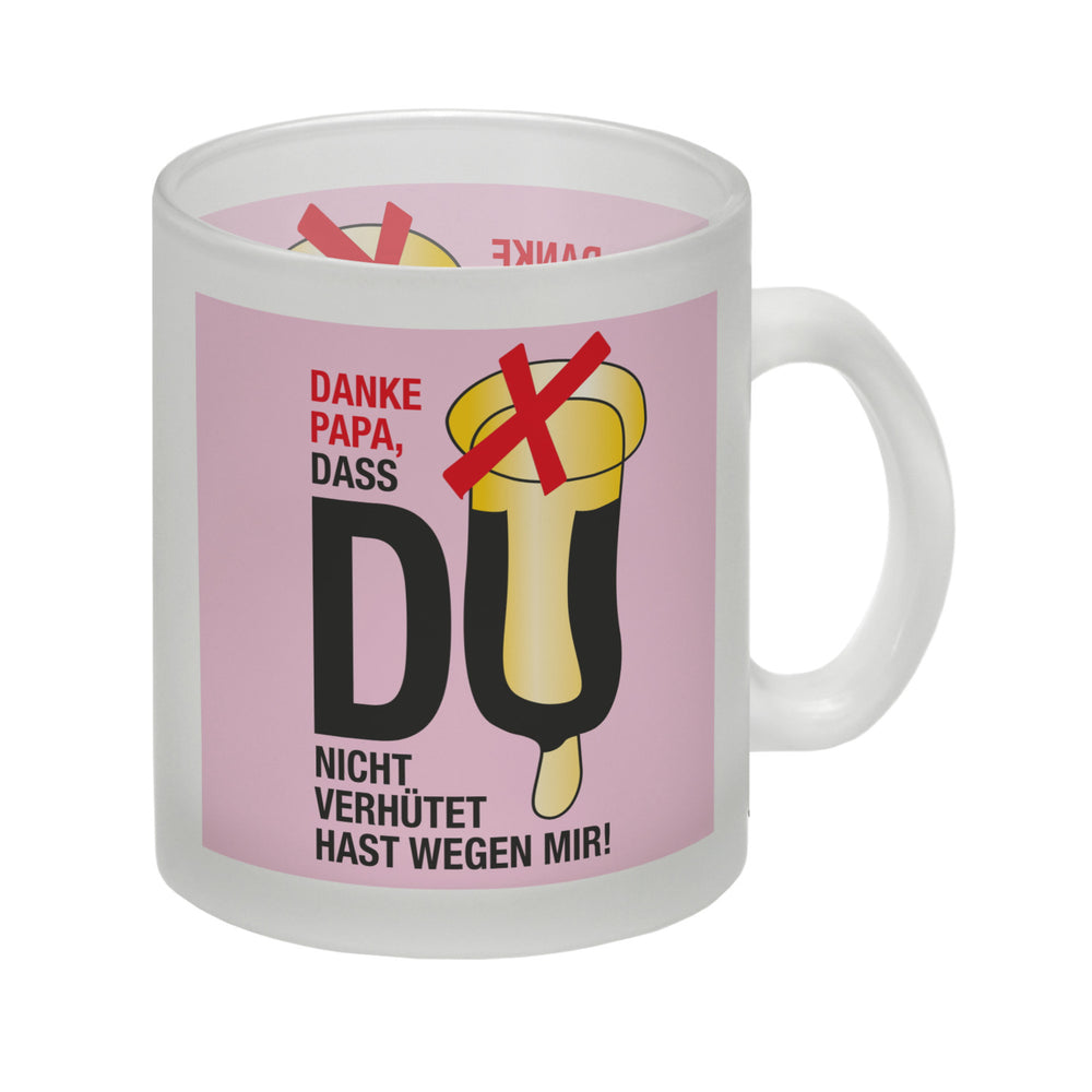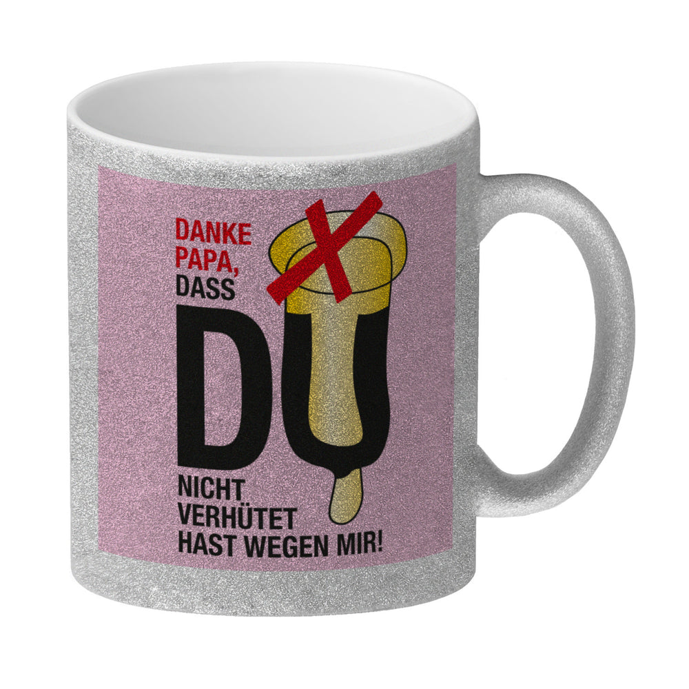 - 1x Danke Papa dass du nicht verhütet hast Kaffeebecher in rosa in der gewählten Ausführung