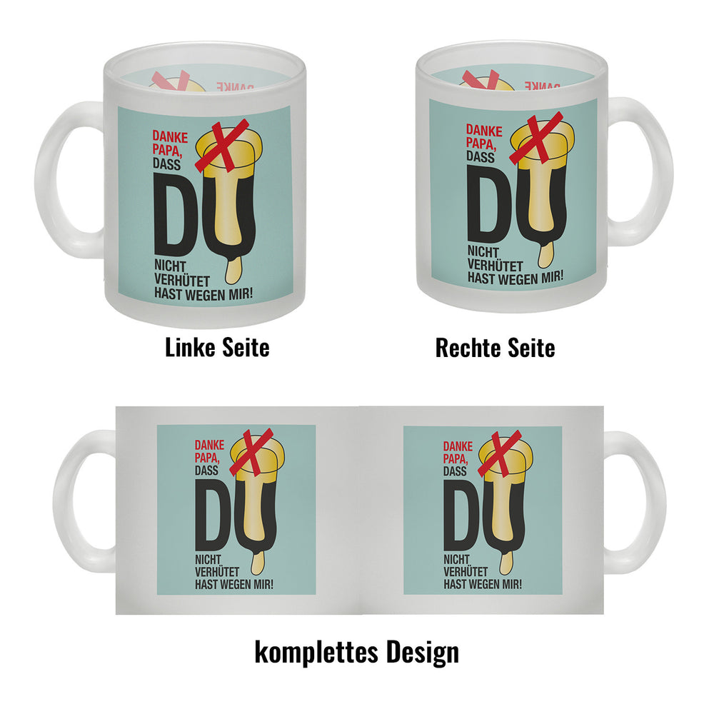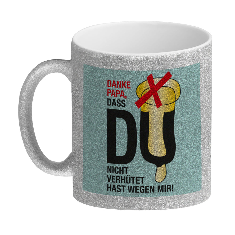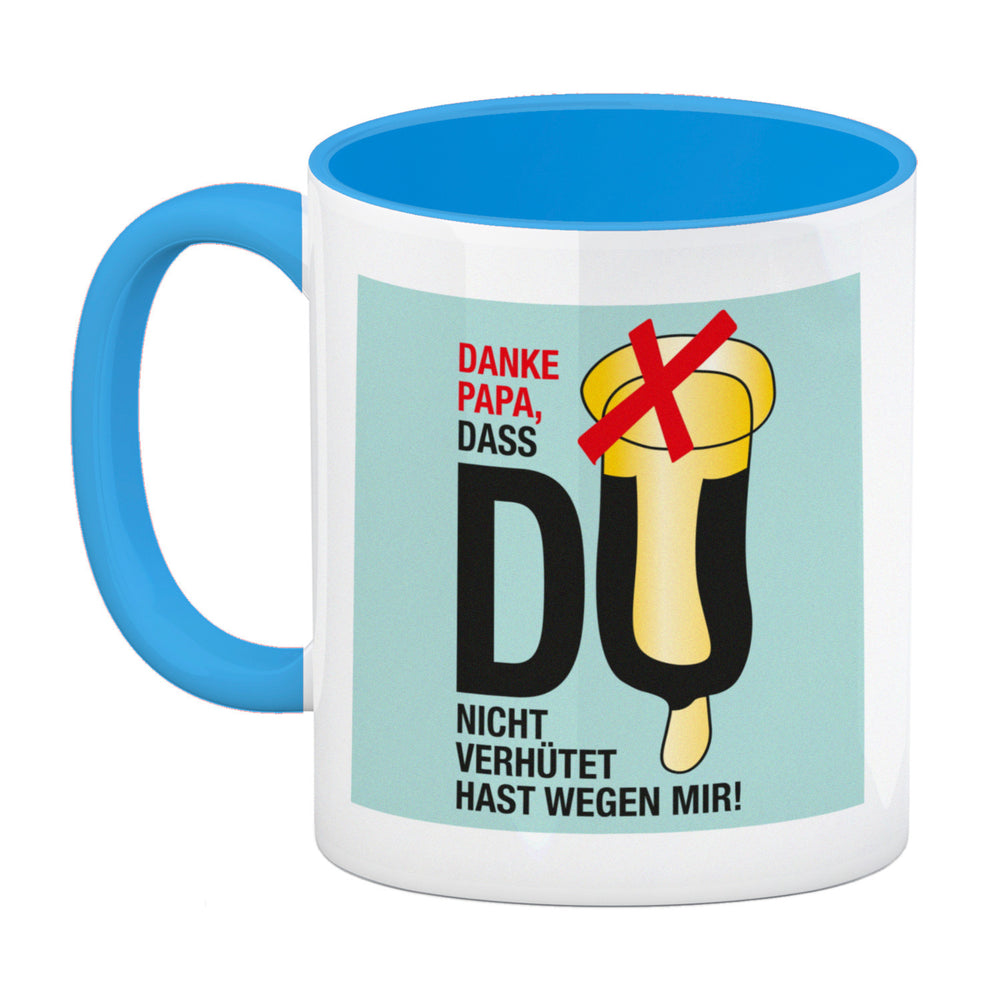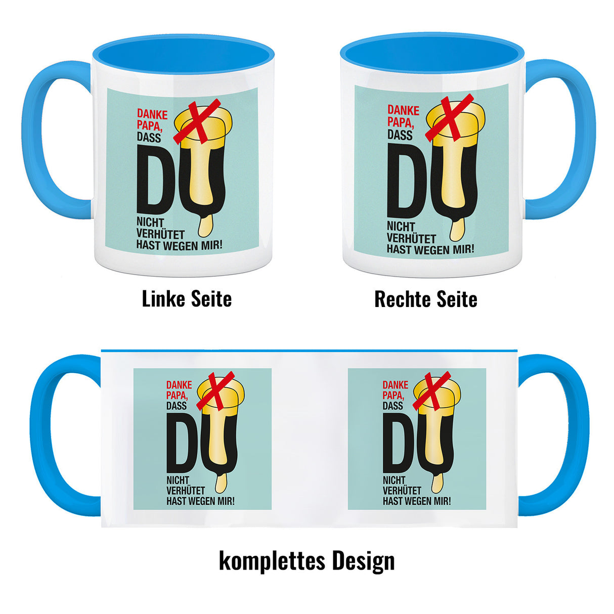 - 1x Danke Papa dass du nicht verhütet hast Kaffeebecher in rosa in der gewählten Ausführung