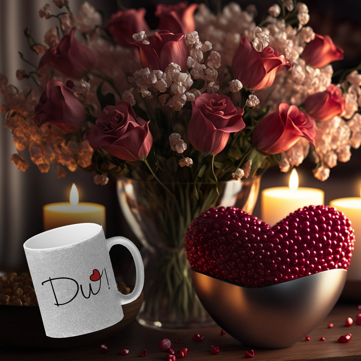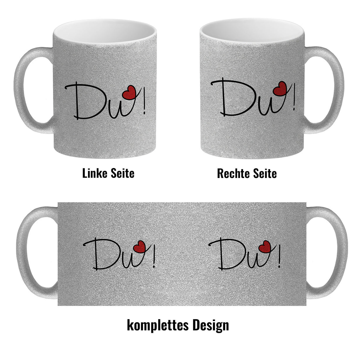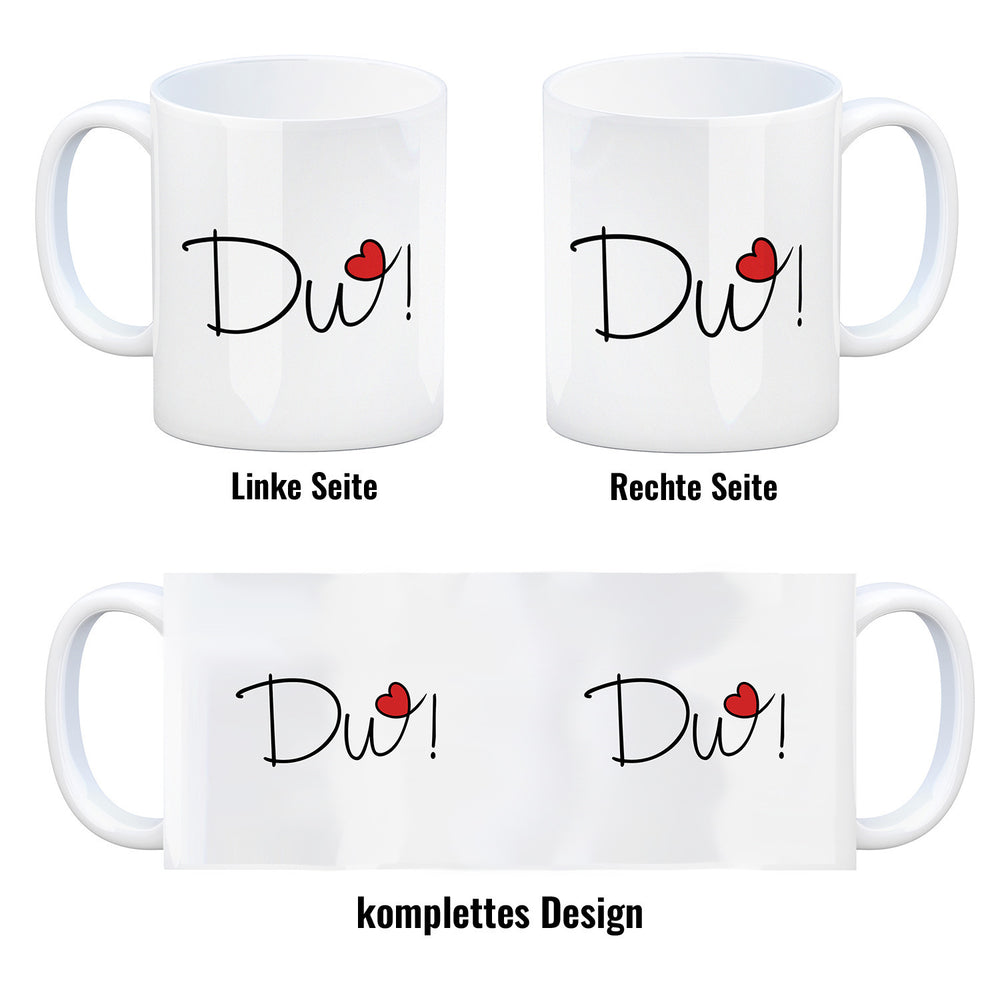 - 1x Du! schöner Kaffeebecher als Geschenk mit Herz in der gewählten Ausführung