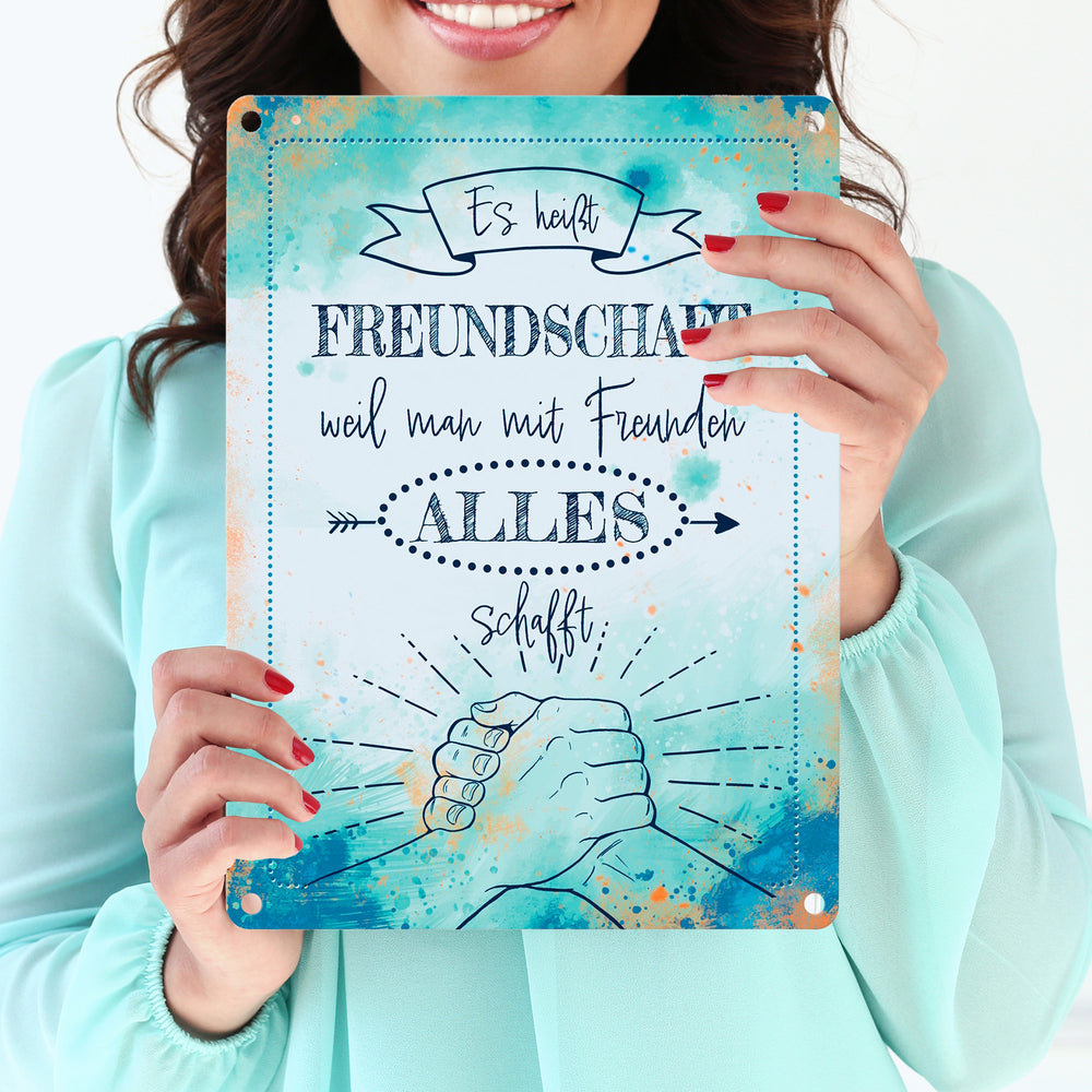 Es heißt Freundschaft, weil man mit Freunden alles schafft Metallschild