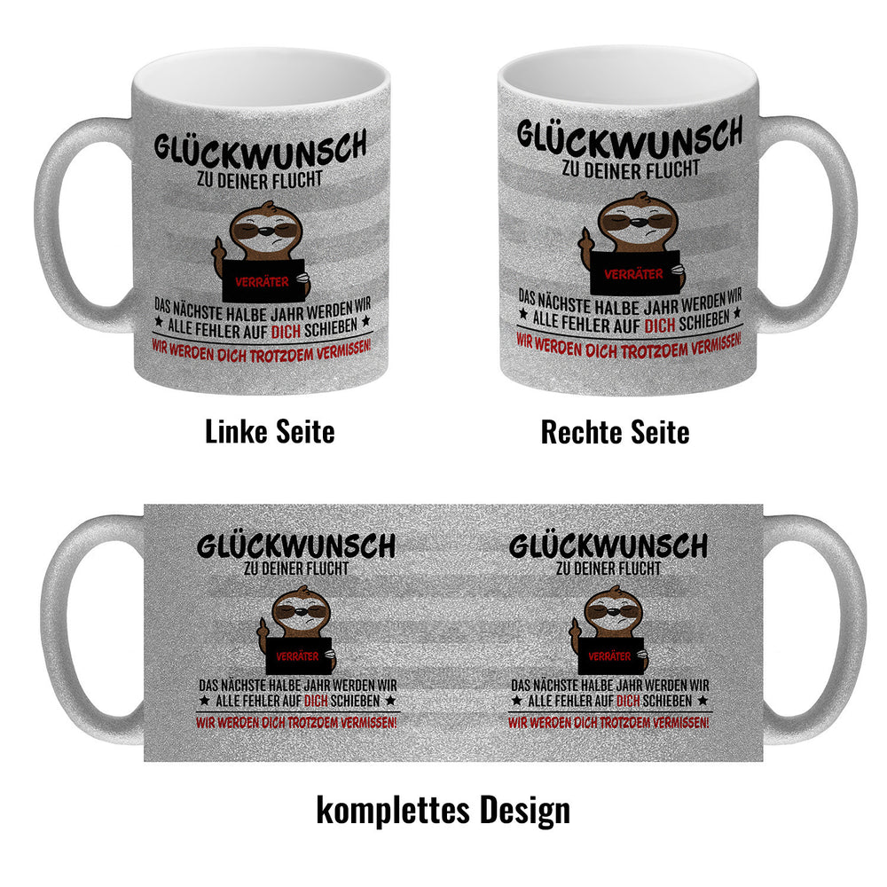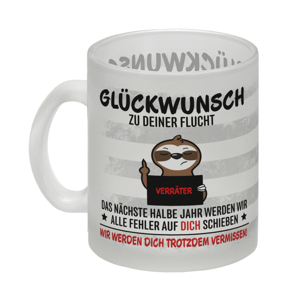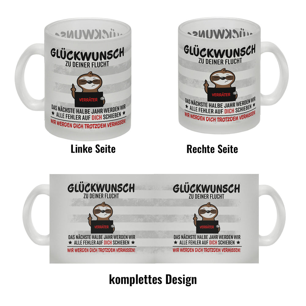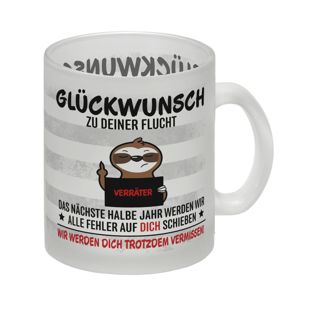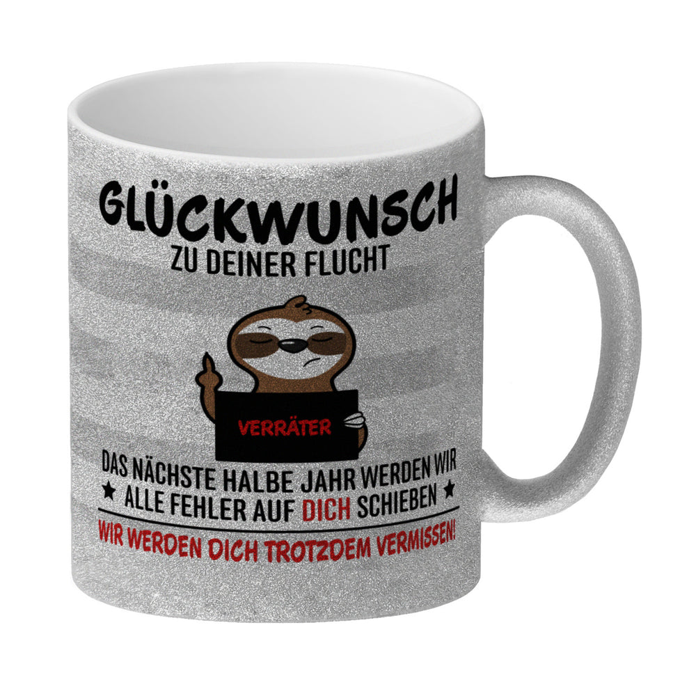 - 1x Glückwunsch zur Flucht, Verräter Mittelfinger Kaffeebecher mit Faultier in der gewählten Ausführung