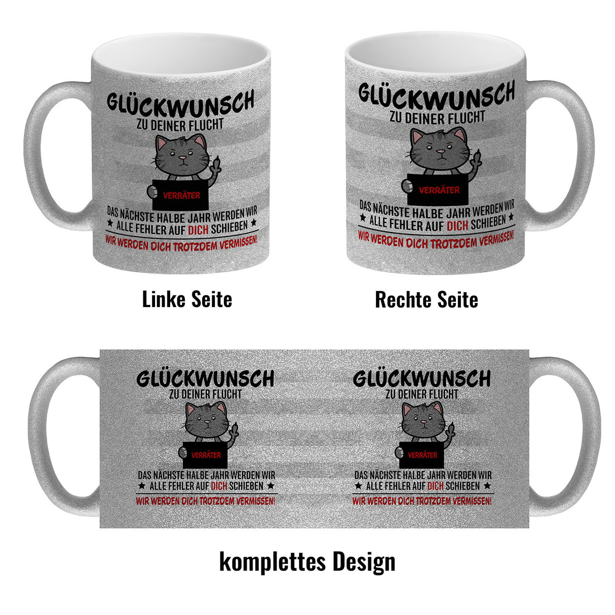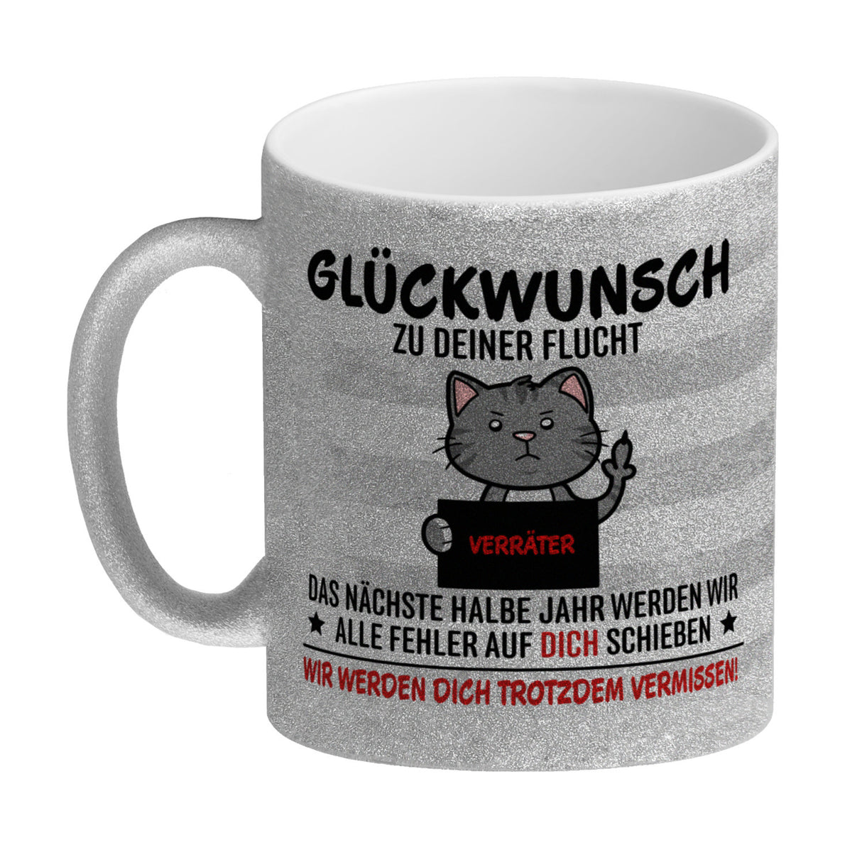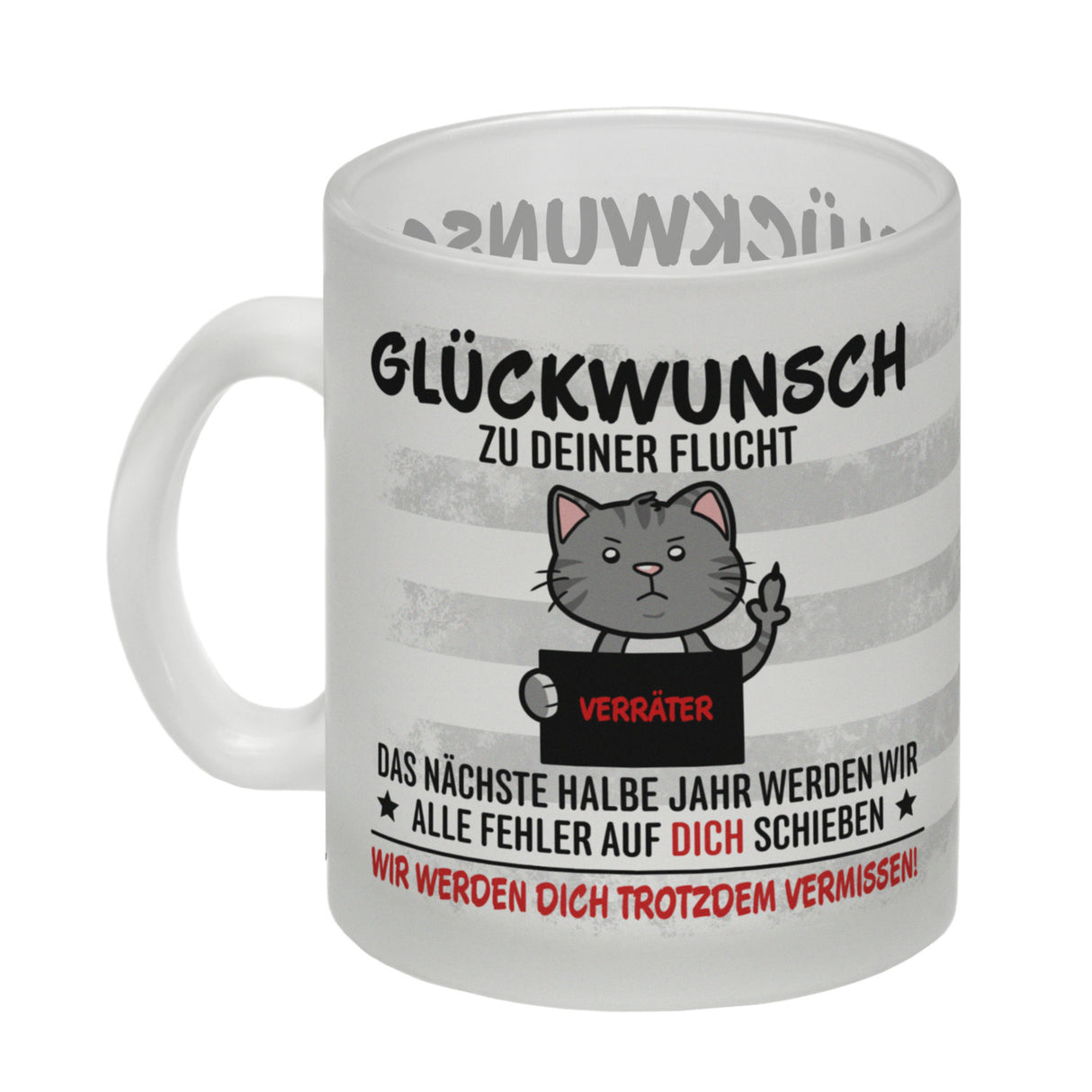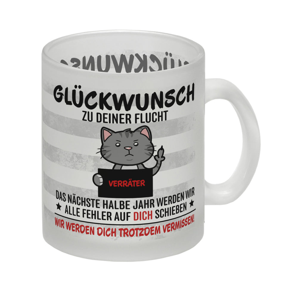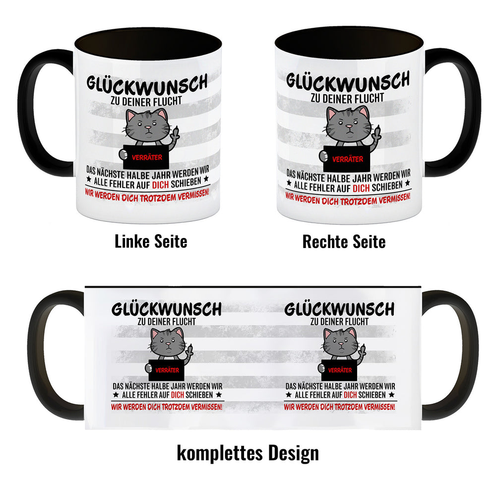 - 1x Glückwunsch zur Flucht, Verräter Mittelfinger Kaffeebecher mit Katze in der gewählten Ausführung