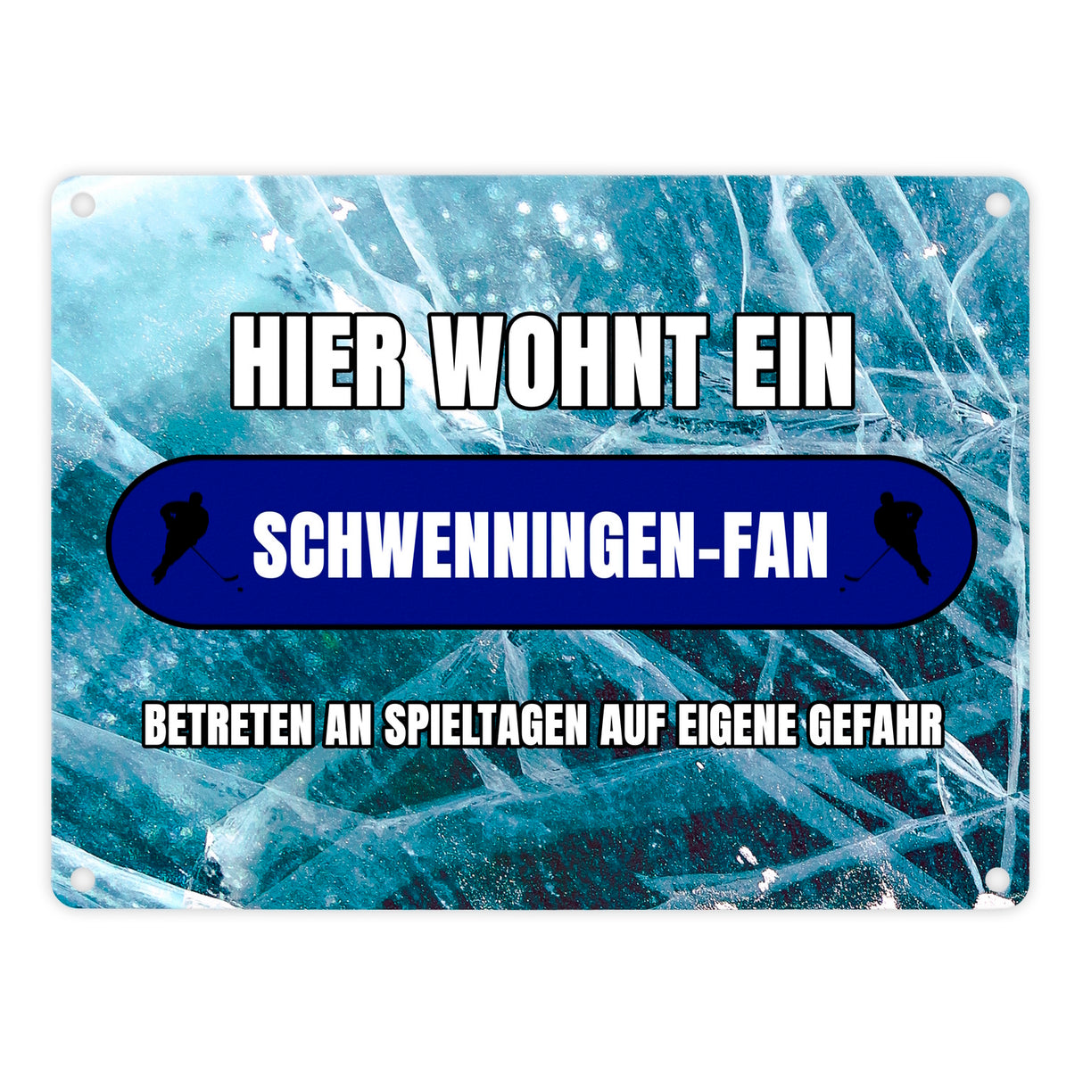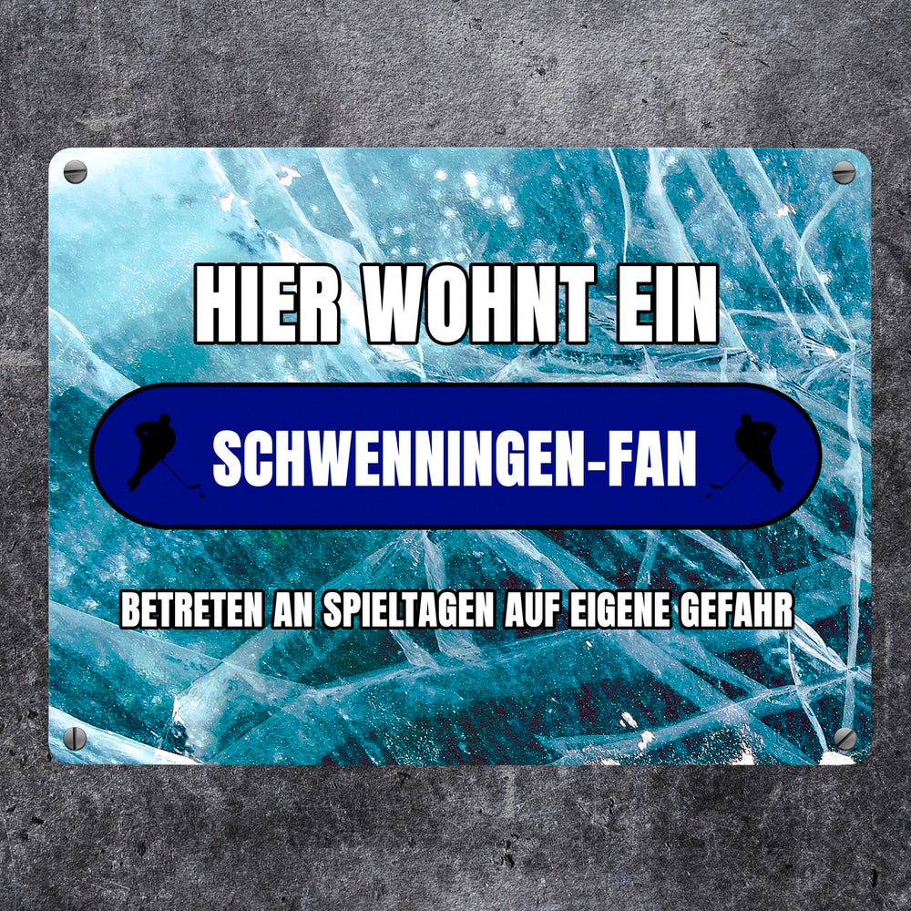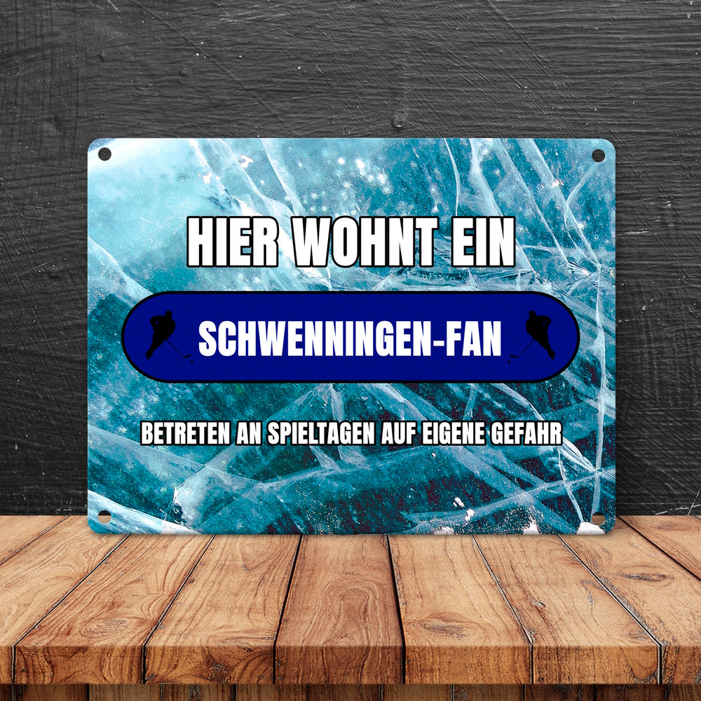 - 1x Hier wohnt ein Schwenningen-Fan Metallschild in 15x20 cm mit Eishallen Boden-Motiv in der gewählten Größe