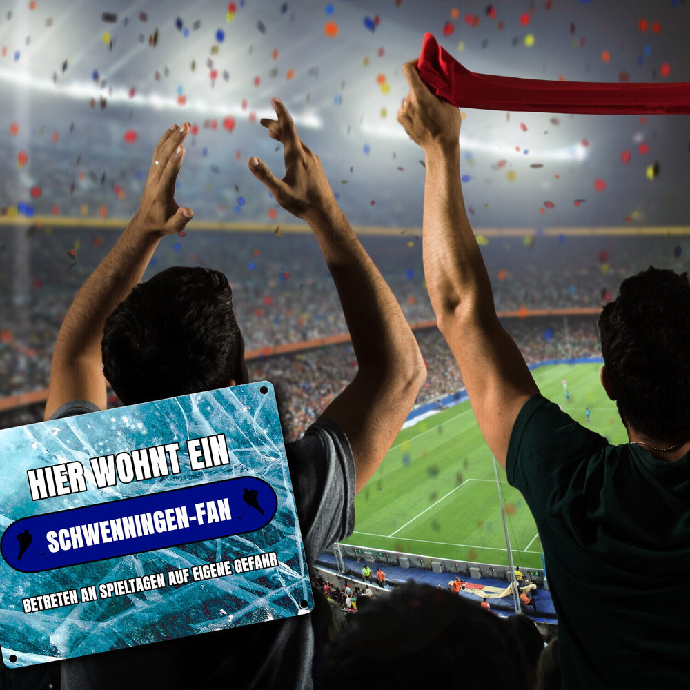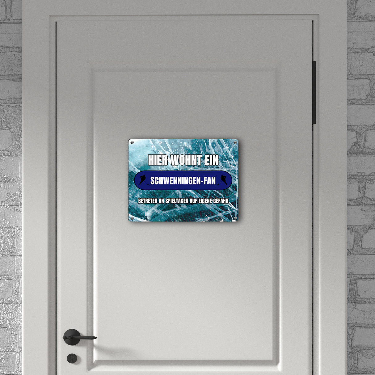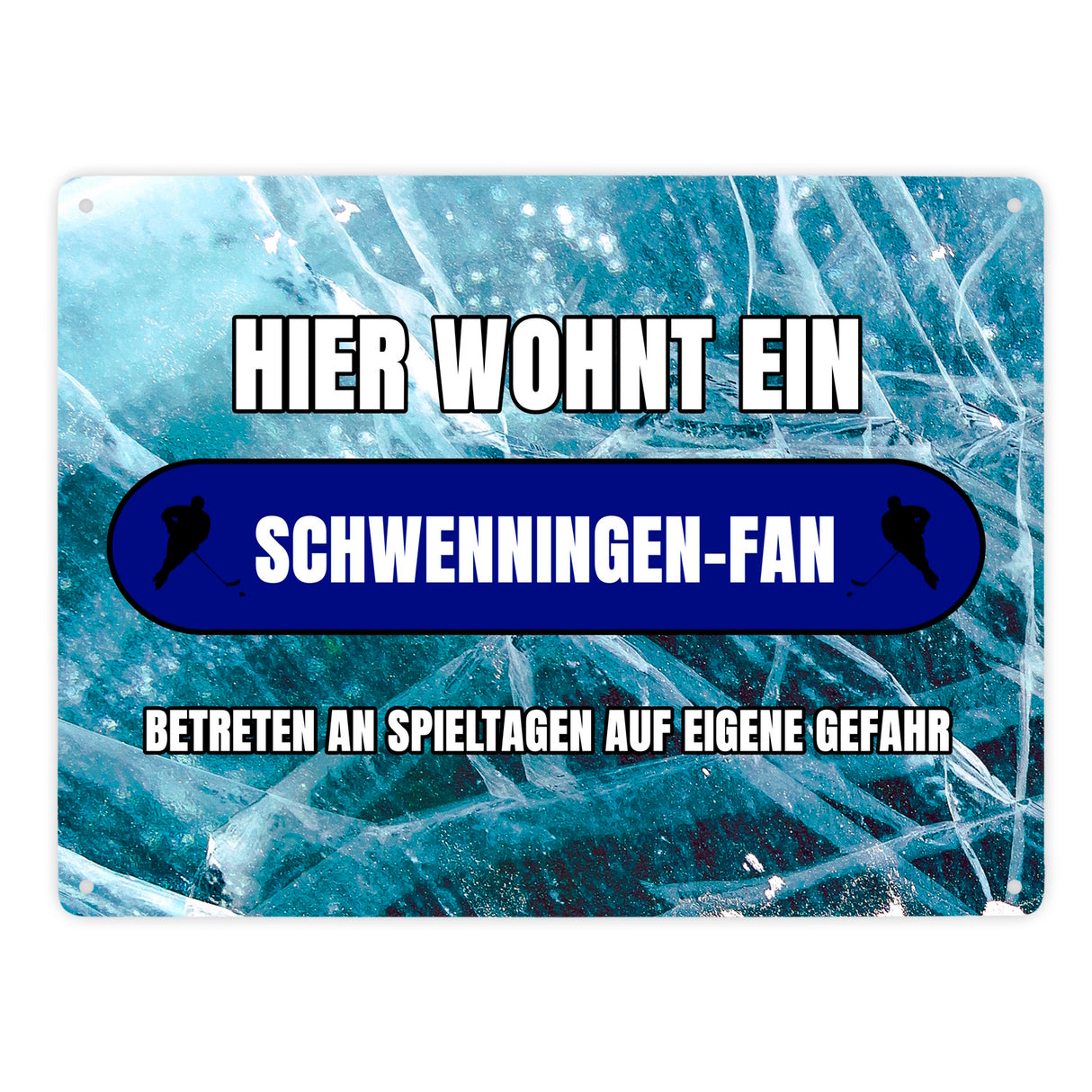 - 1x Hier wohnt ein Schwenningen-Fan Metallschild in 15x20 cm mit Eishallen Boden-Motiv in der gewählten Größe