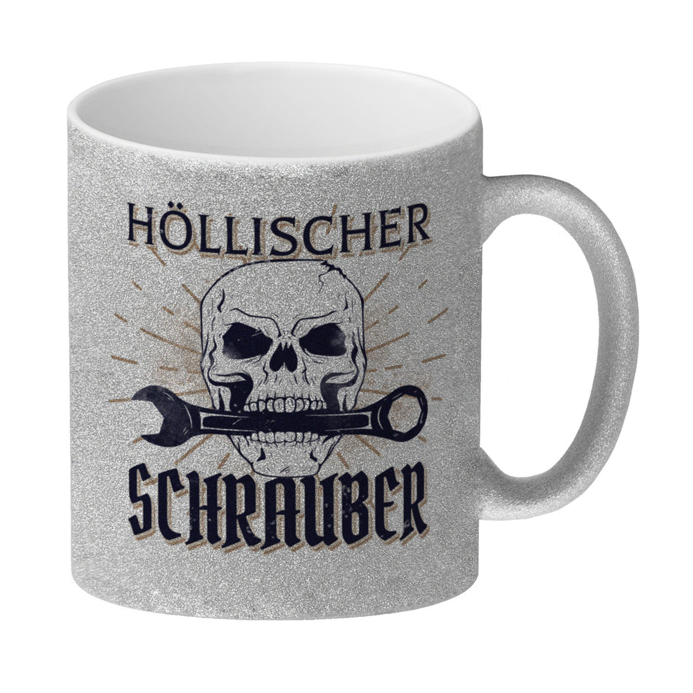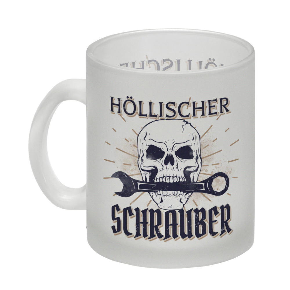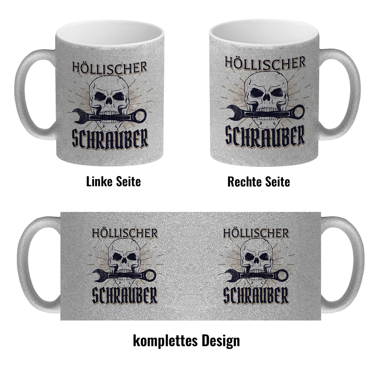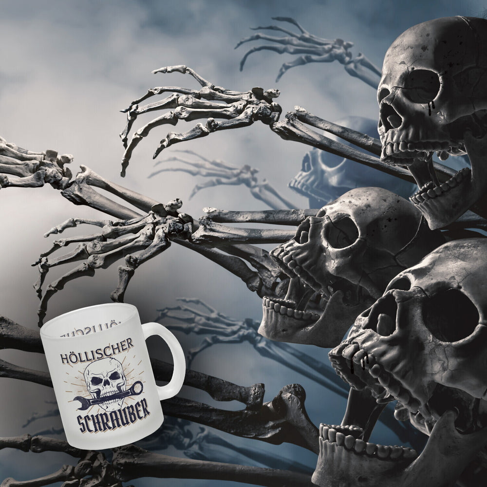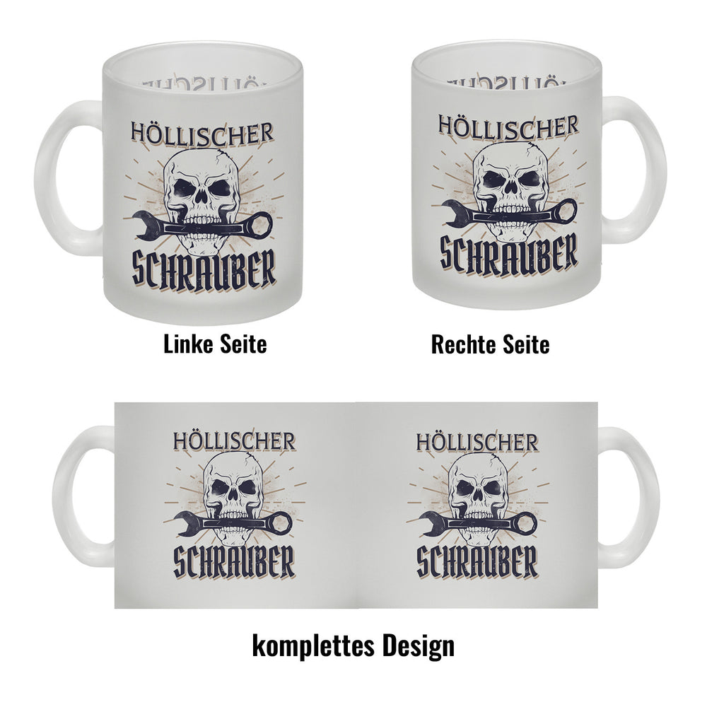 - 1x Höllischer Schrauber Kaffeebecher mit Totenkopf und Schraubenschlüssel Motiv in der gewählten Ausführung