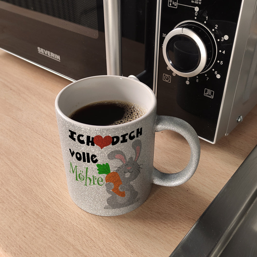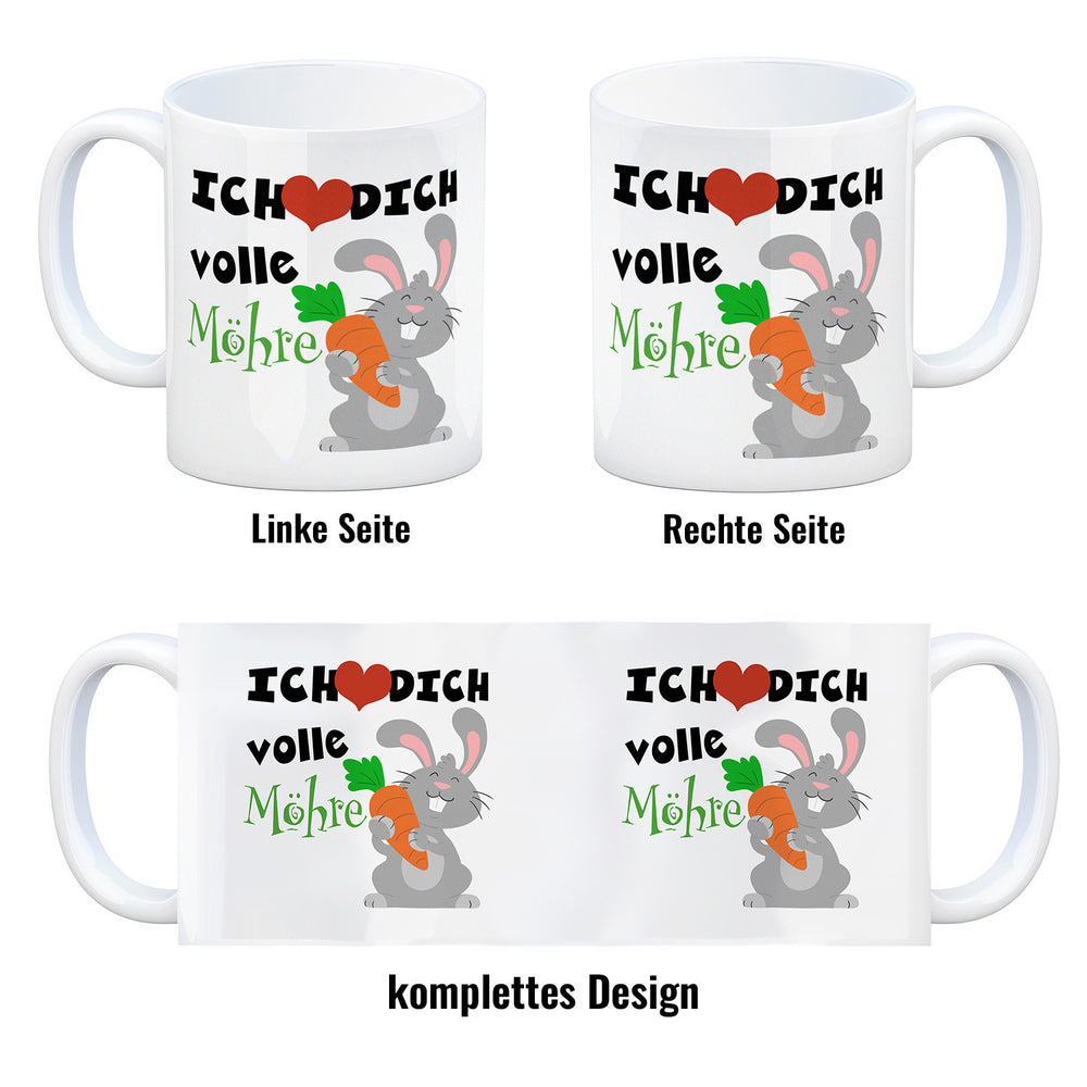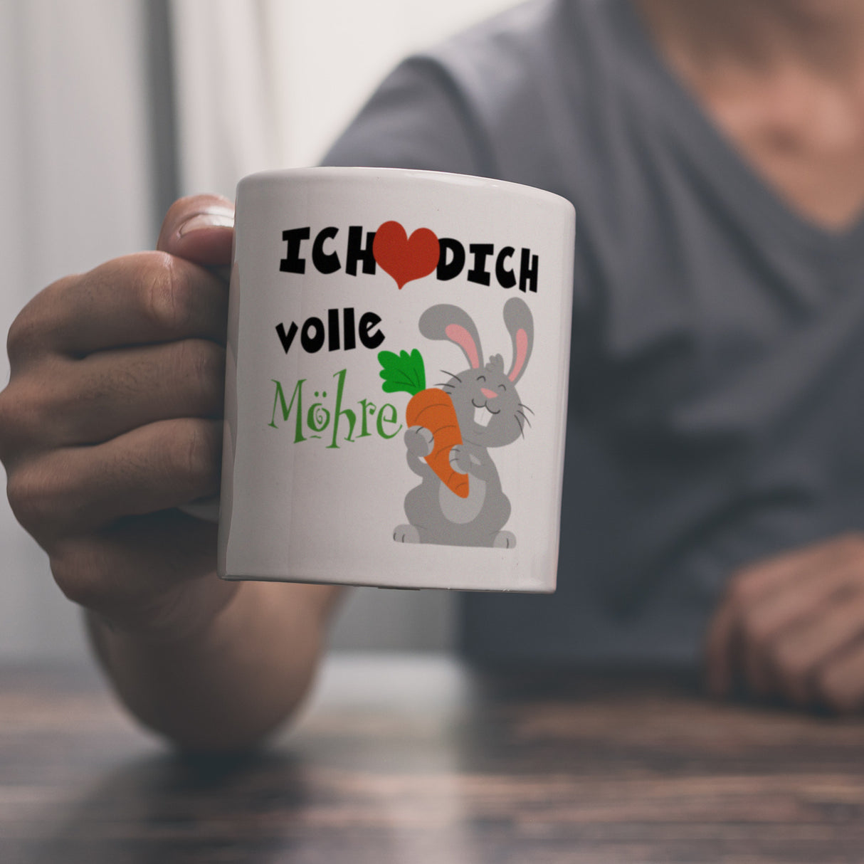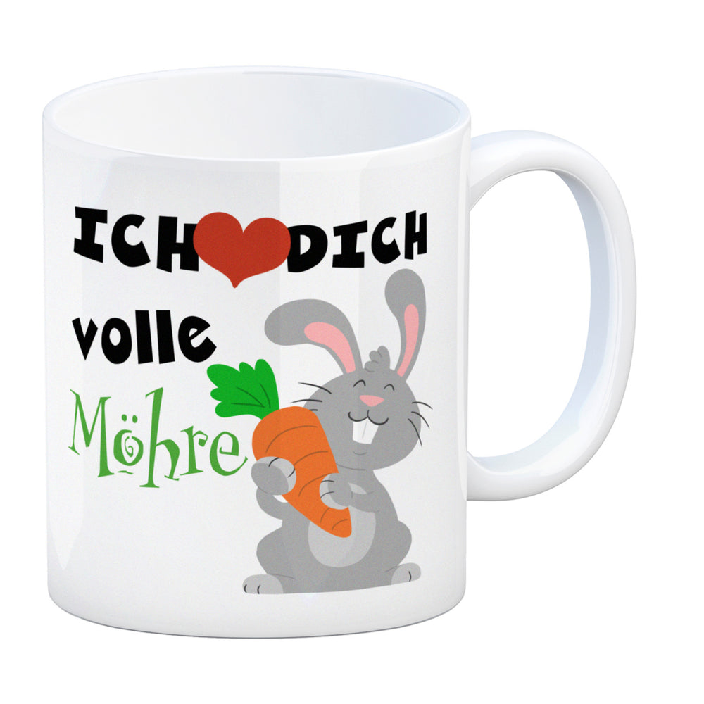 Hase Kaffeebecher mit Spruch Ich mag dich volle Möhre