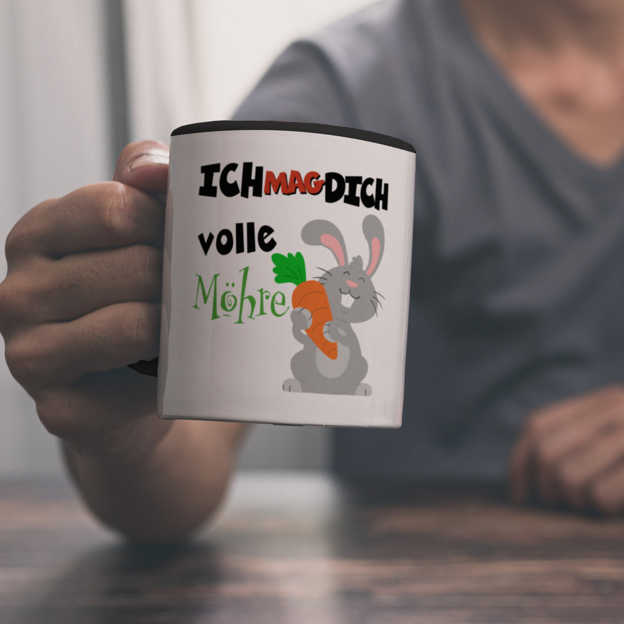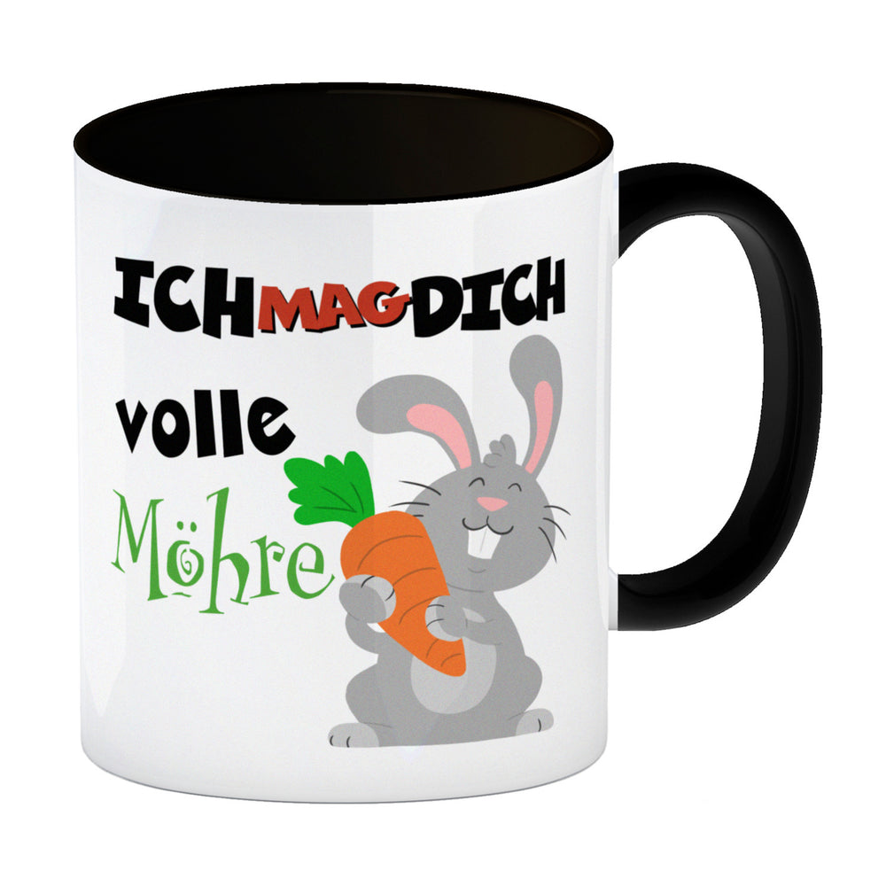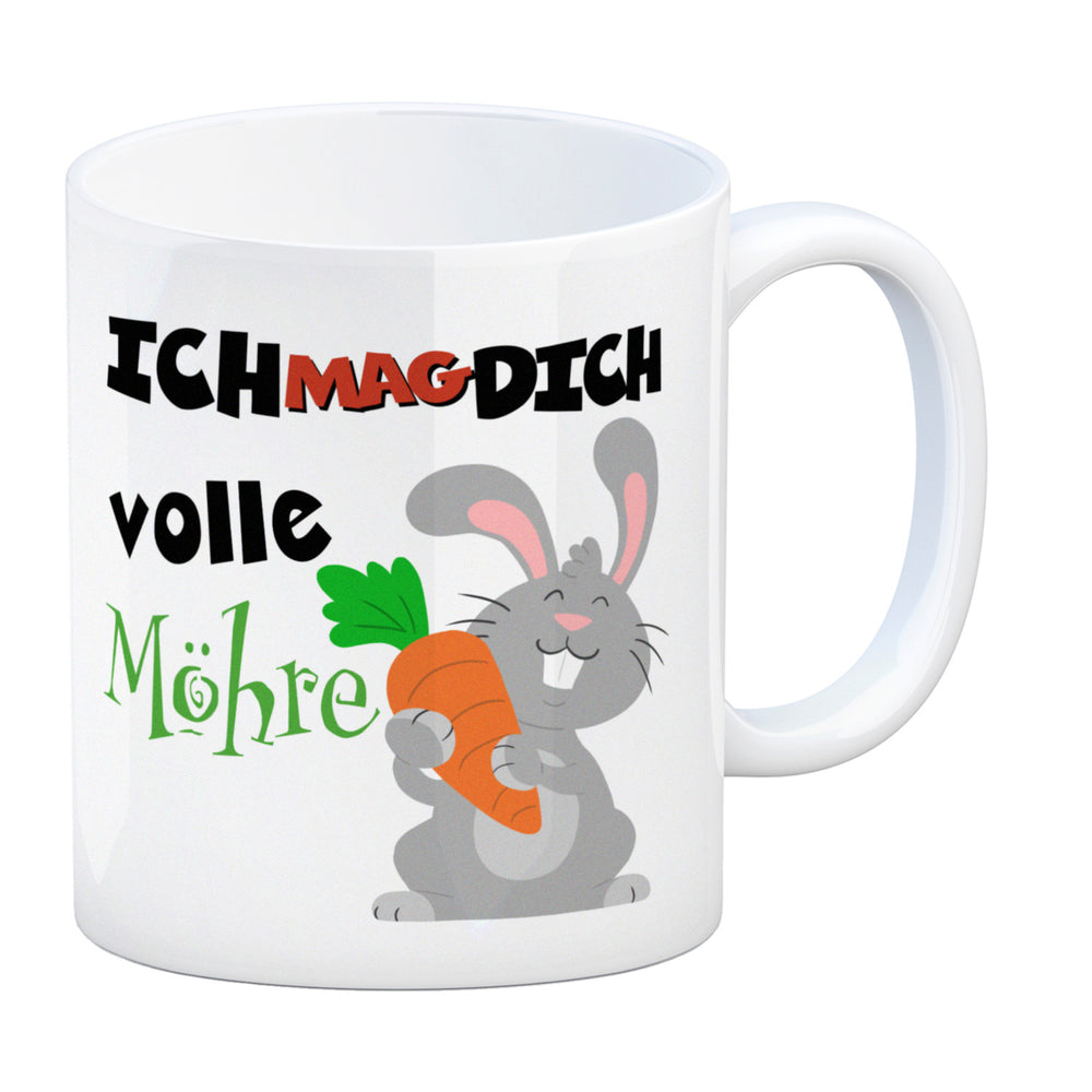 • 1x Ich mag dich volle Möhre Kaffeebecher mit süßem Hasen in der gewählten Ausführung