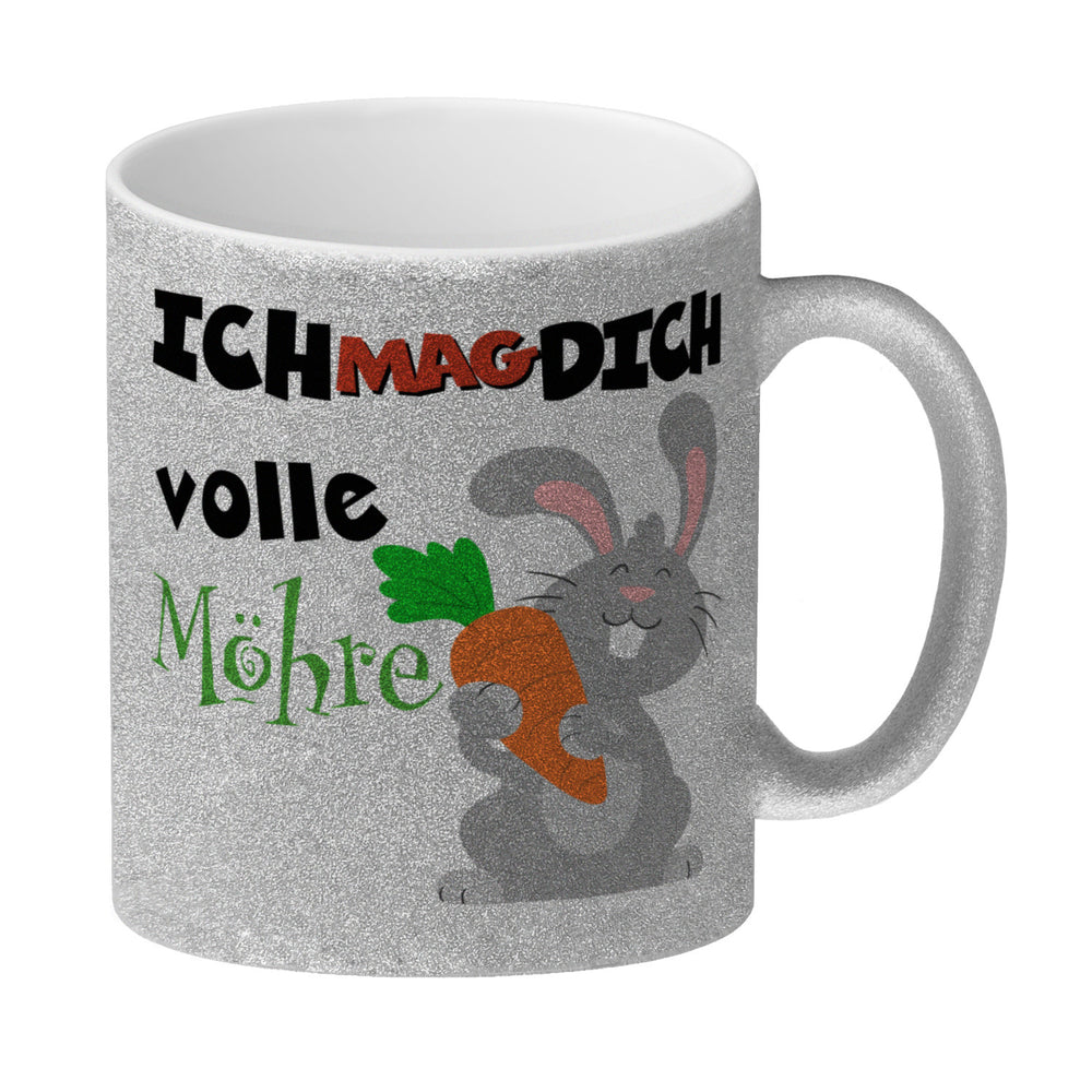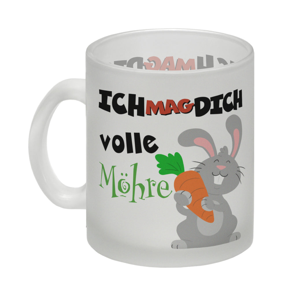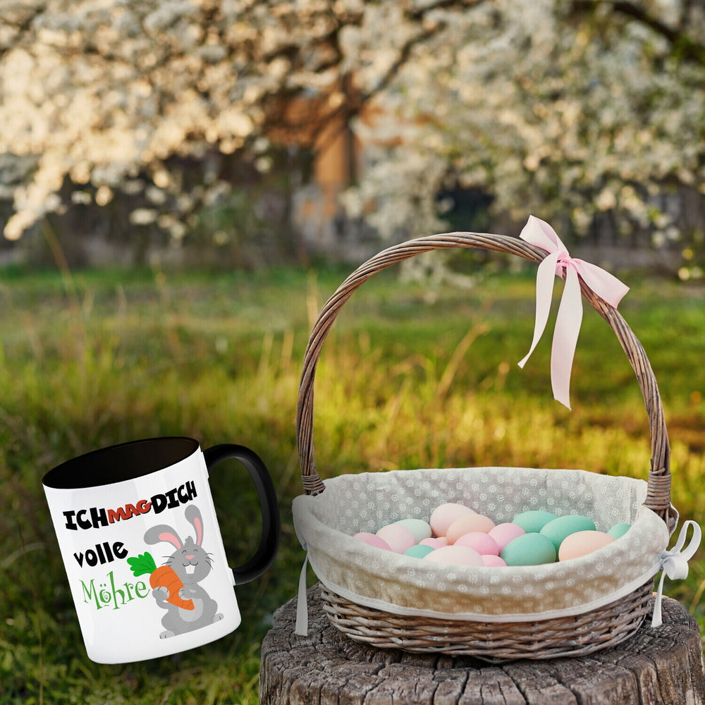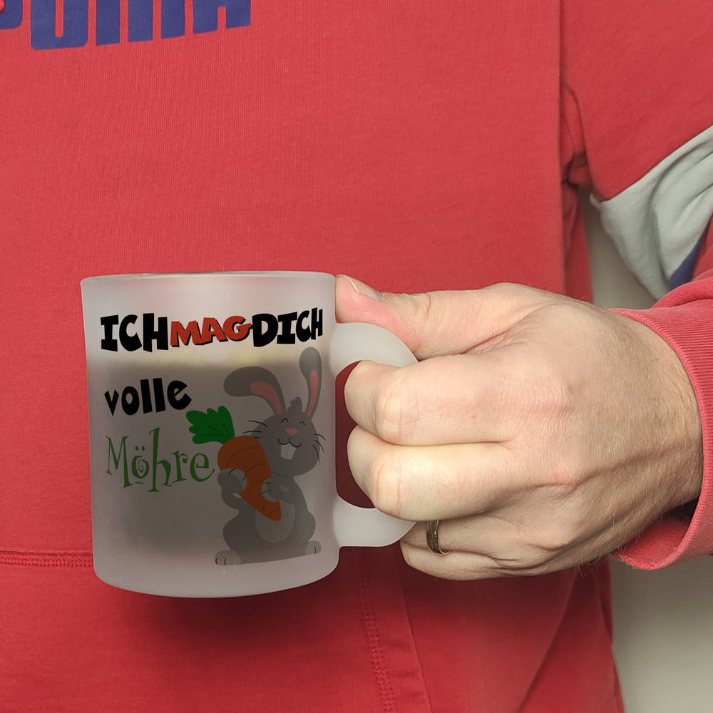 • 1x Ich mag dich volle Möhre Kaffeebecher mit süßem Hasen in der gewählten Ausführung