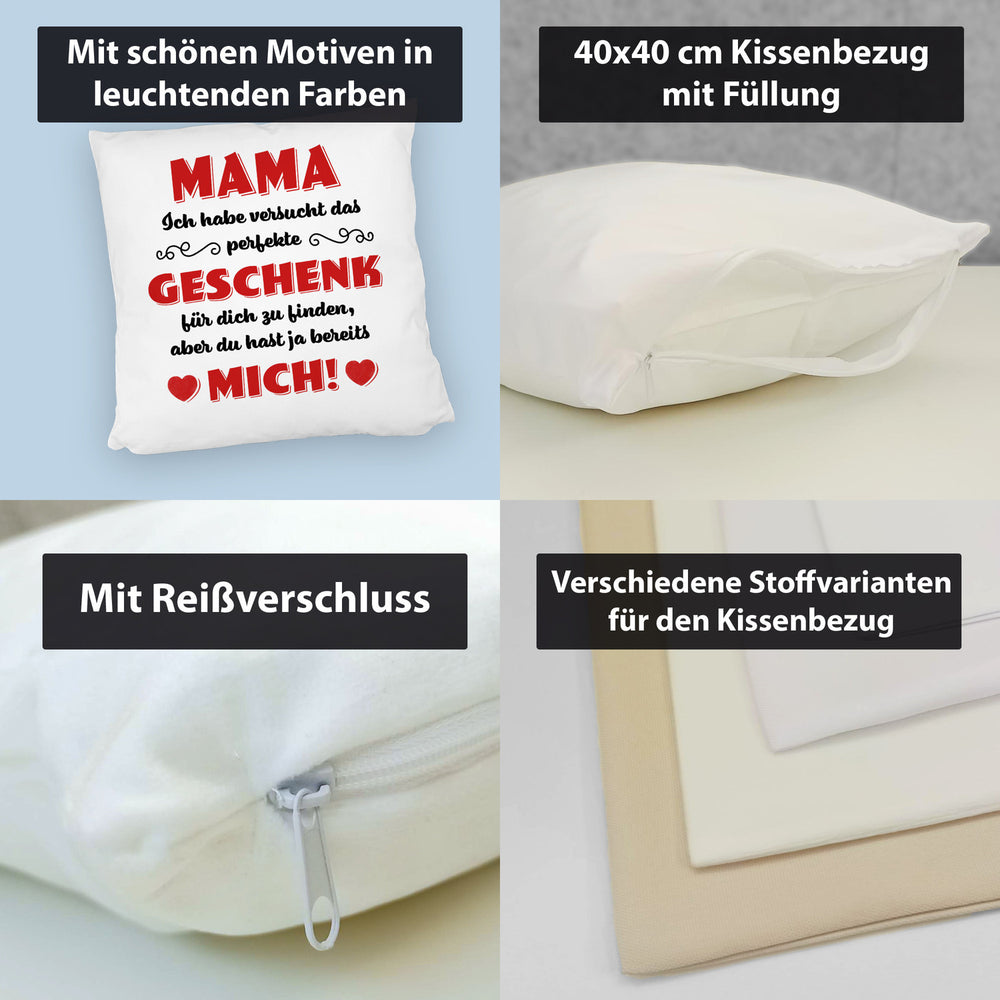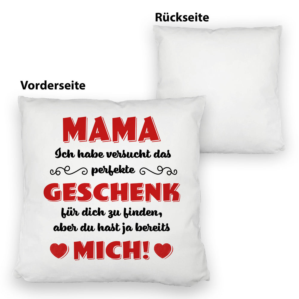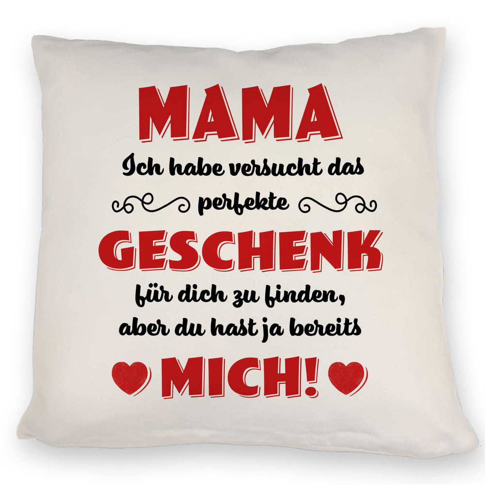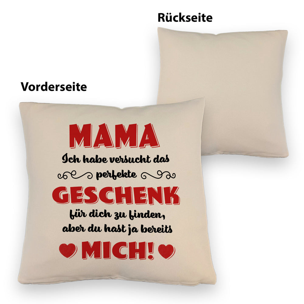 - Das witzige Kissen mit Spruchmotiv ist die perfekte Geschenkidee für Mütter oder Frauen zum Muttertag, Geburtstag oder einfach nur so. Der Spruch Mama Ich habe versucht das perfekte Geschenk für dich zu finden, aber du hast ja bereits mich! verleiht dem Artikel einen besonders liebevollen Touch und weckt Interesse beim Betrachter.