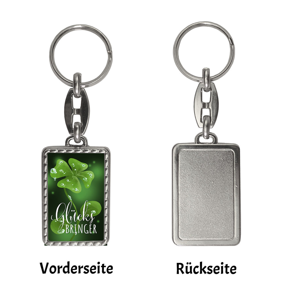 | Kleeblatt/Bordüre | ![]() | inkl. Schlüsselring aus Metall / Motivgröße ca. 4x2,5 cm |