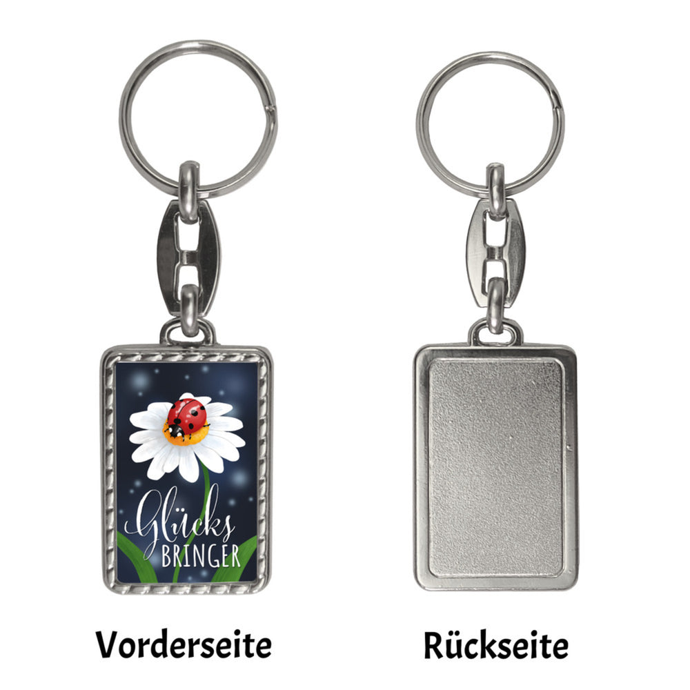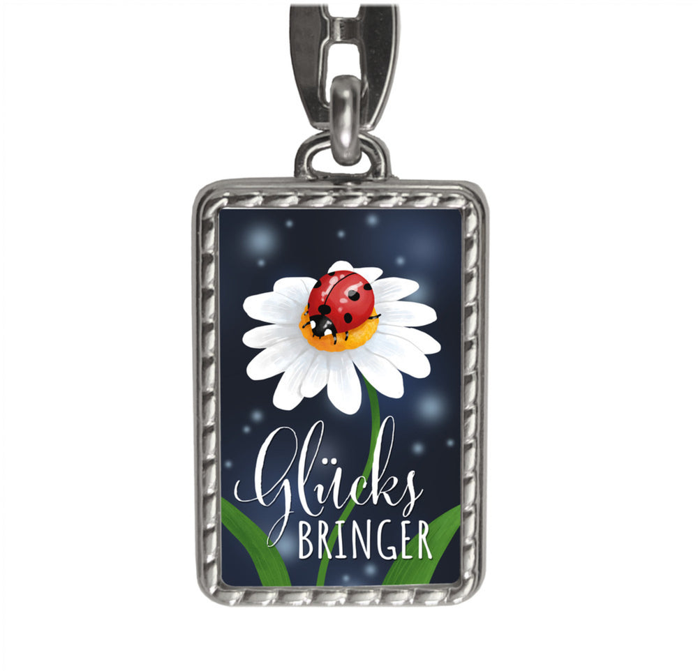 | Marienkäfer/Bordüre | ![]() | inkl. Schlüsselring aus Metall / Motivgröße ca. 4x2,5 cm |