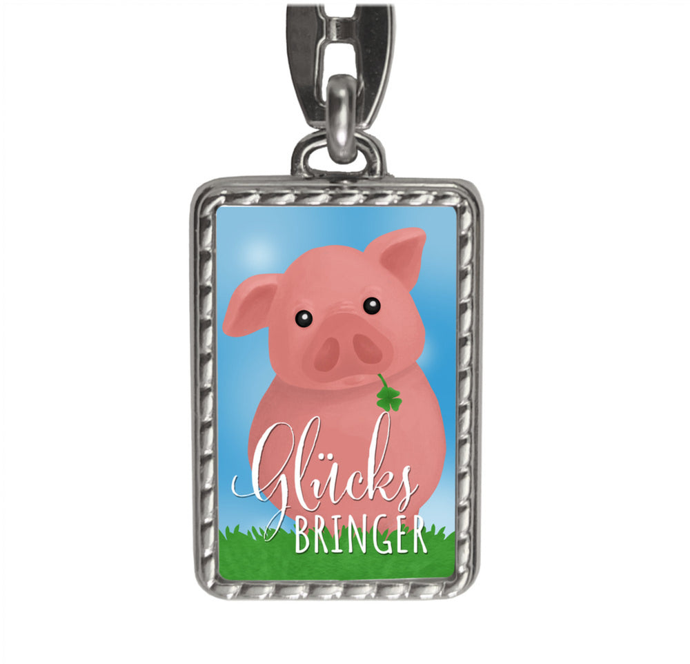 | Schweinchen/Bordüre | ![]() | inkl. Schlüsselring aus Metall / Motivgröße ca. 4x2,5 cm |