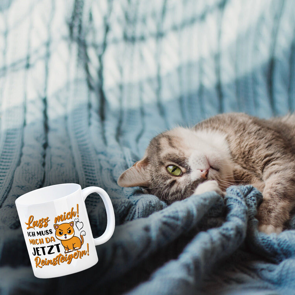 Lass mich! Ich muss mich da jetzt reinsteigern! Kaffeebecher mit Katze