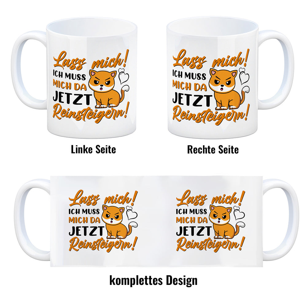 • 1x Lass mich! Ich muss mich da jetzt reinsteigern! Kaffeebecher mit Katze in der gewählten Ausführung