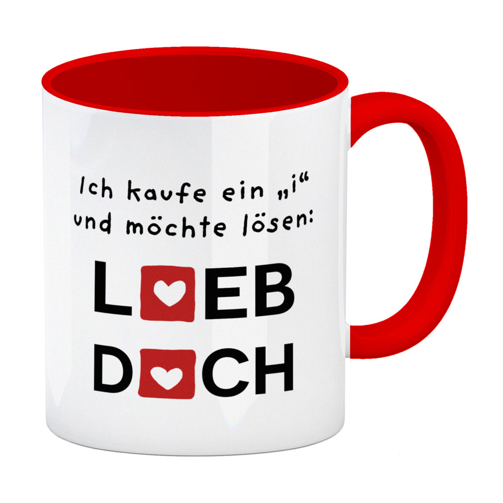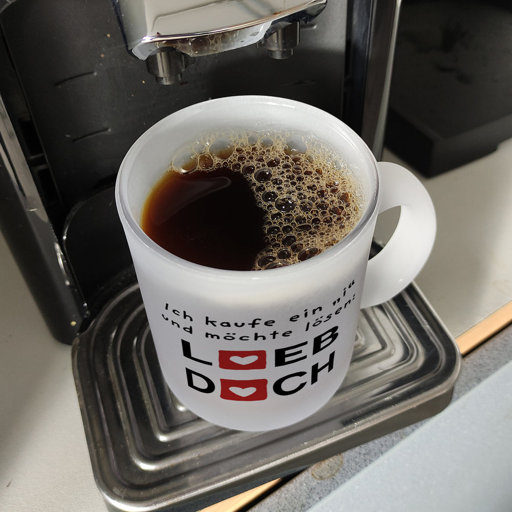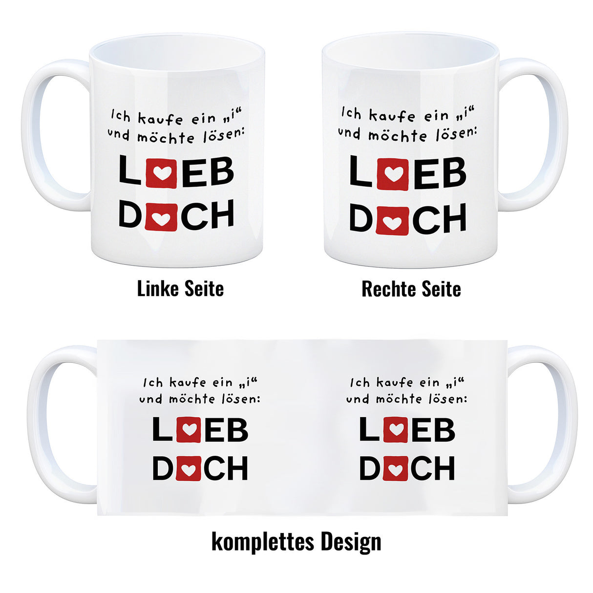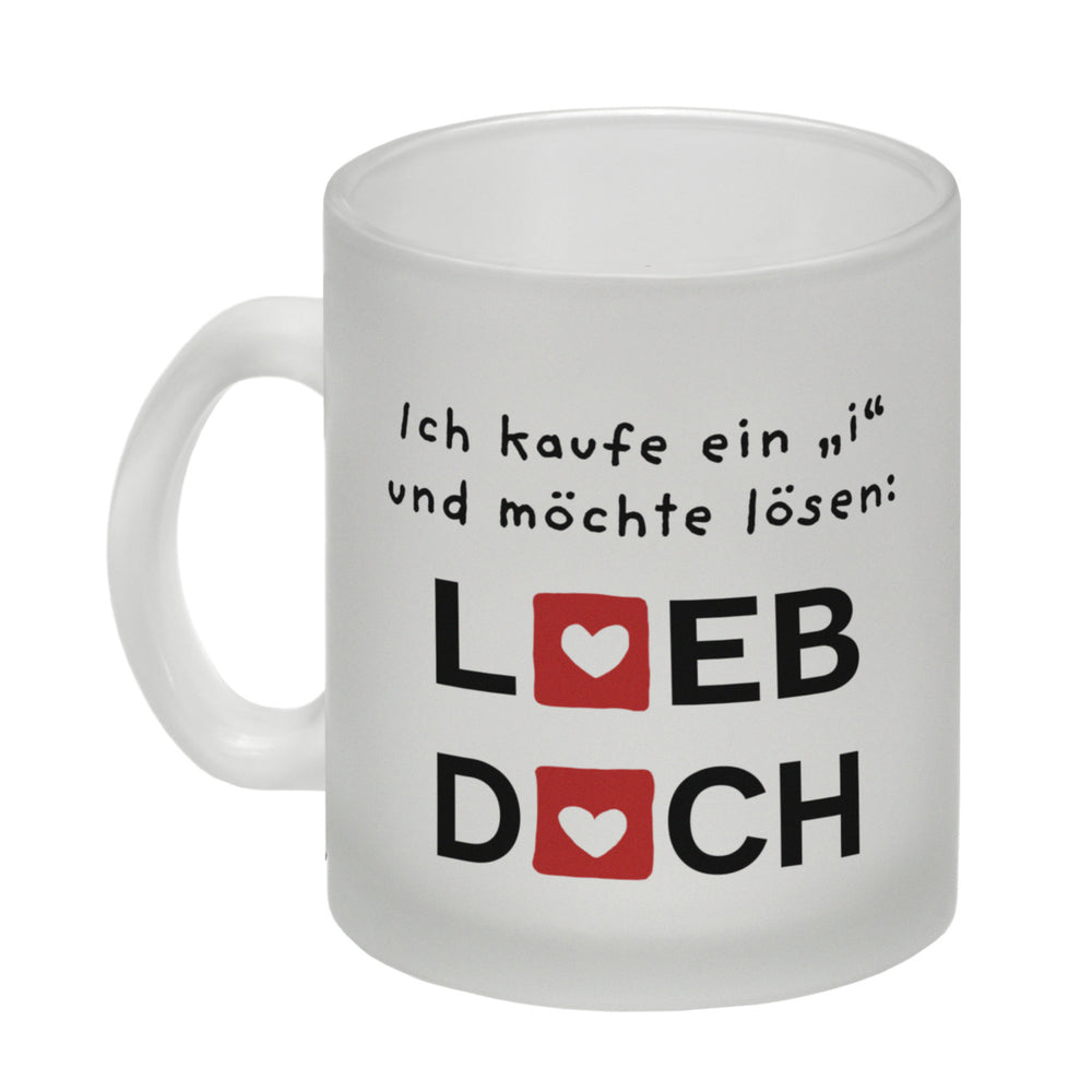 - 1x Lieb dich Kaffeebecher mit lustigem Spruch und Herzen in der gewählten Ausführung