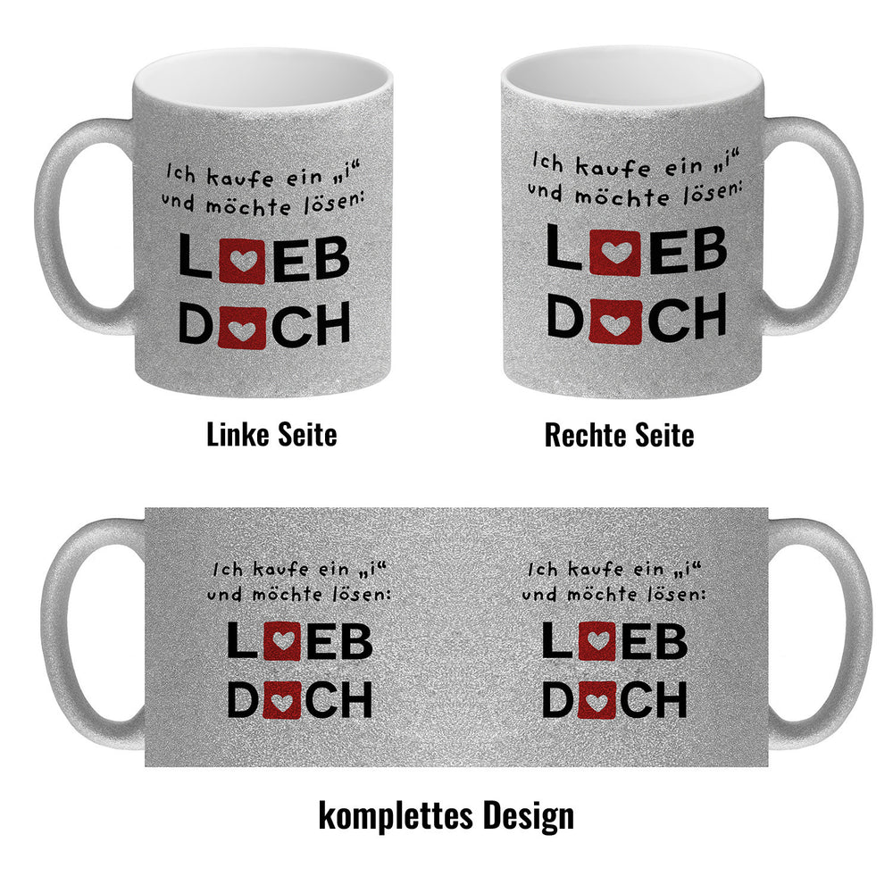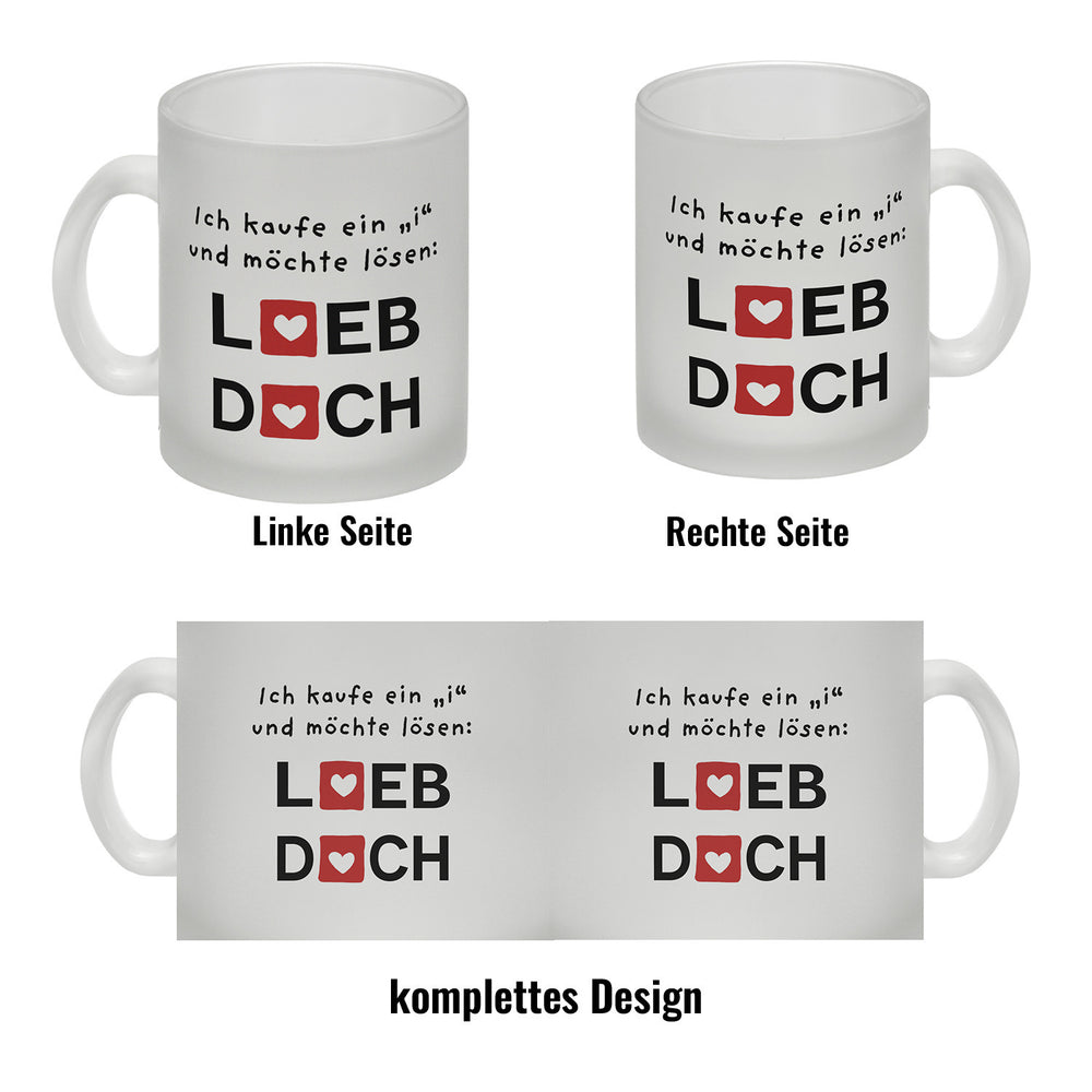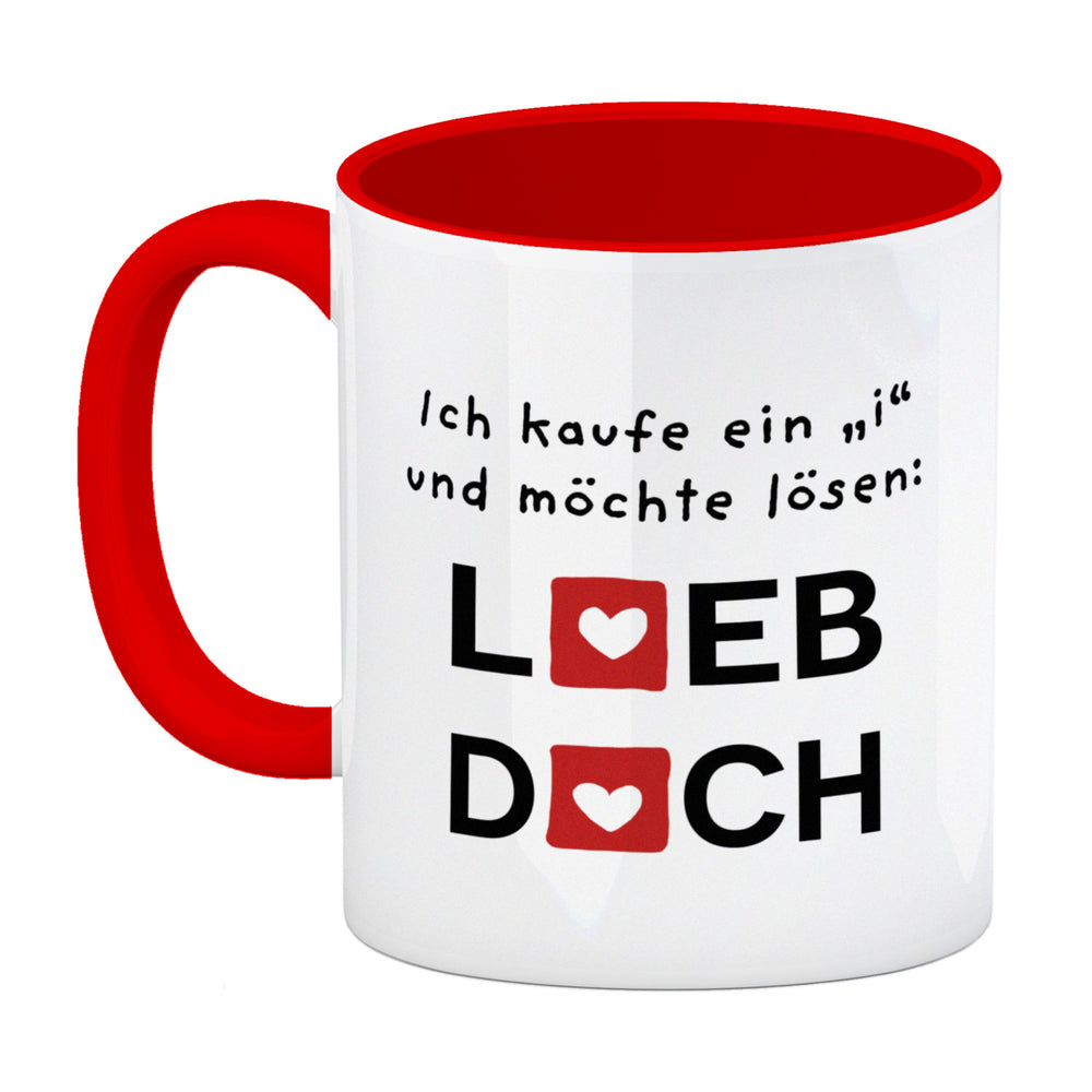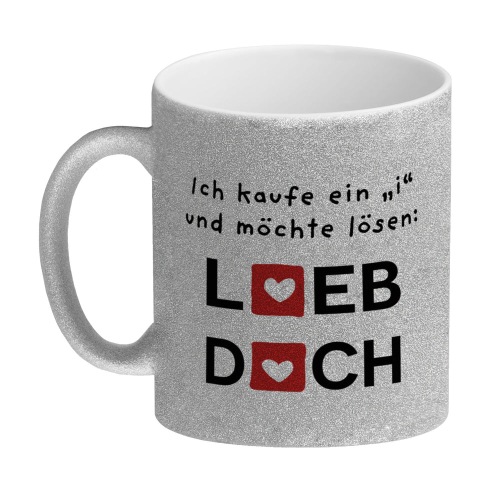 - 1x Lieb dich Kaffeebecher mit lustigem Spruch und Herzen in der gewählten Ausführung