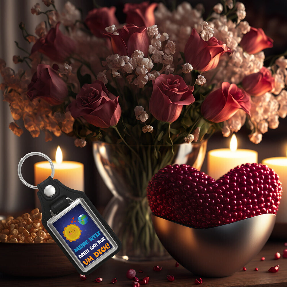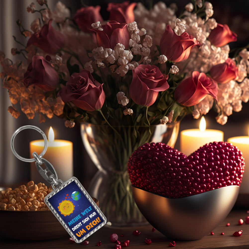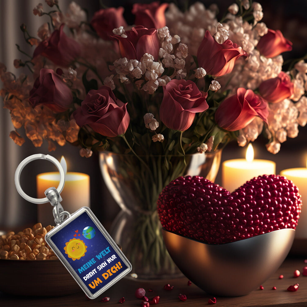 - 1x Meine Welt dreht sich nur um dich Schlüsselanhänger in der gewählten Ausführung