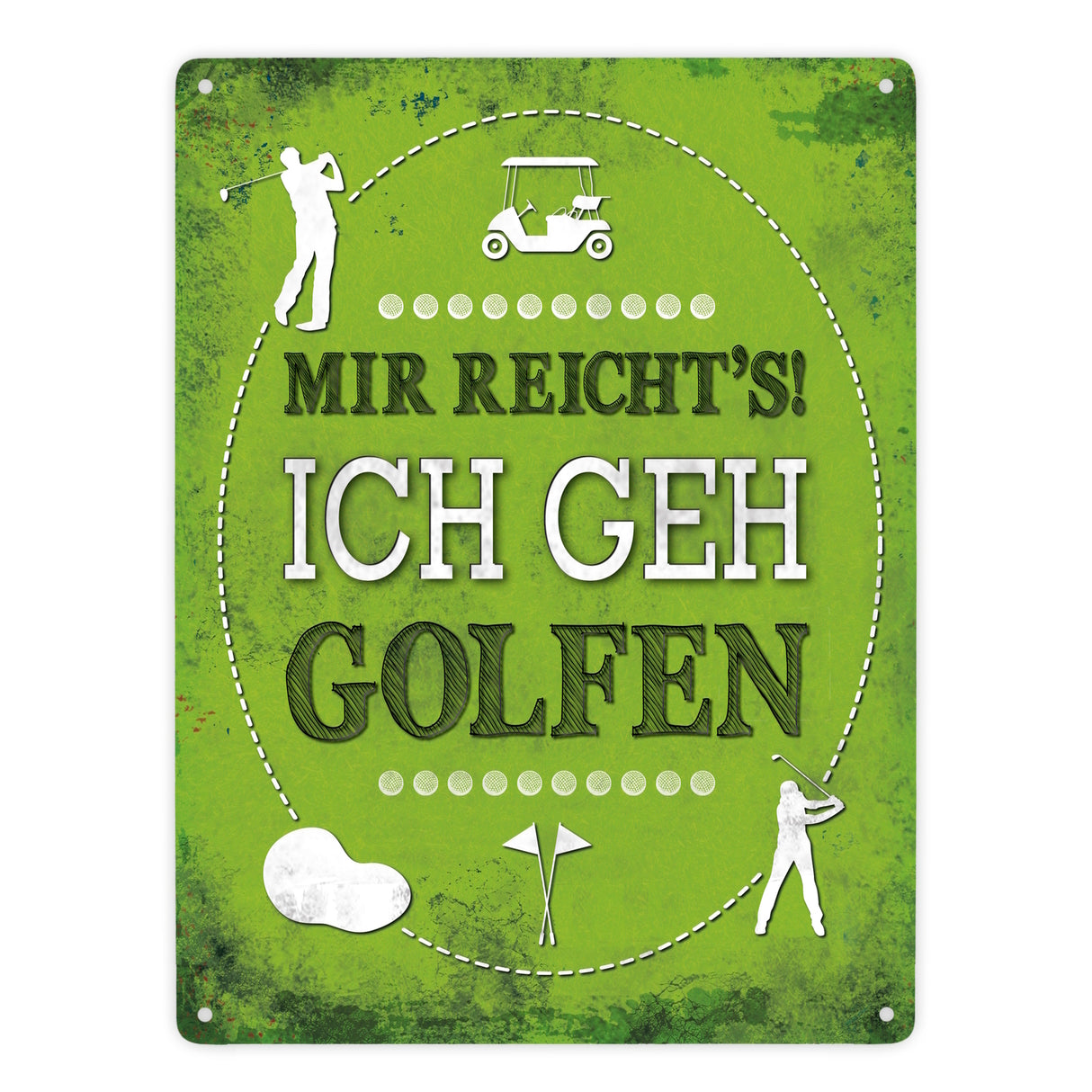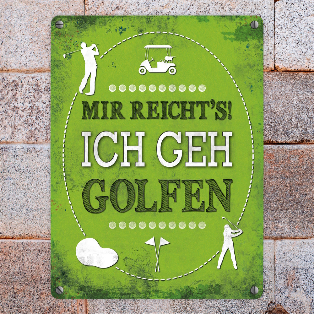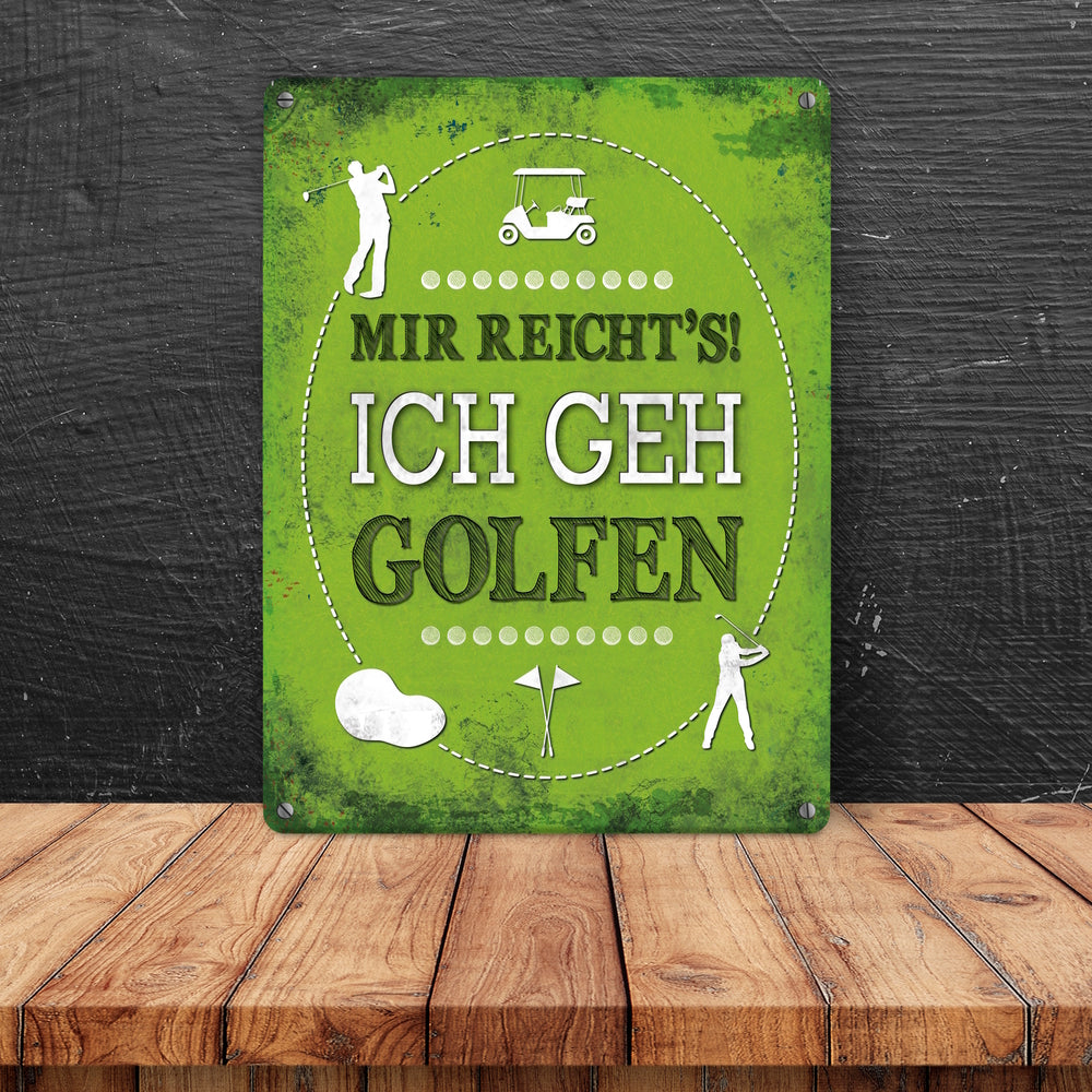 - 1x Metallschild mit Spruch: Mir reicht's! Ich geh golfen in der gewählten Größe