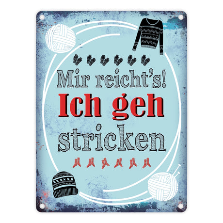 Metallschild mit Spruch: Mir reicht's! Ich geh stricken