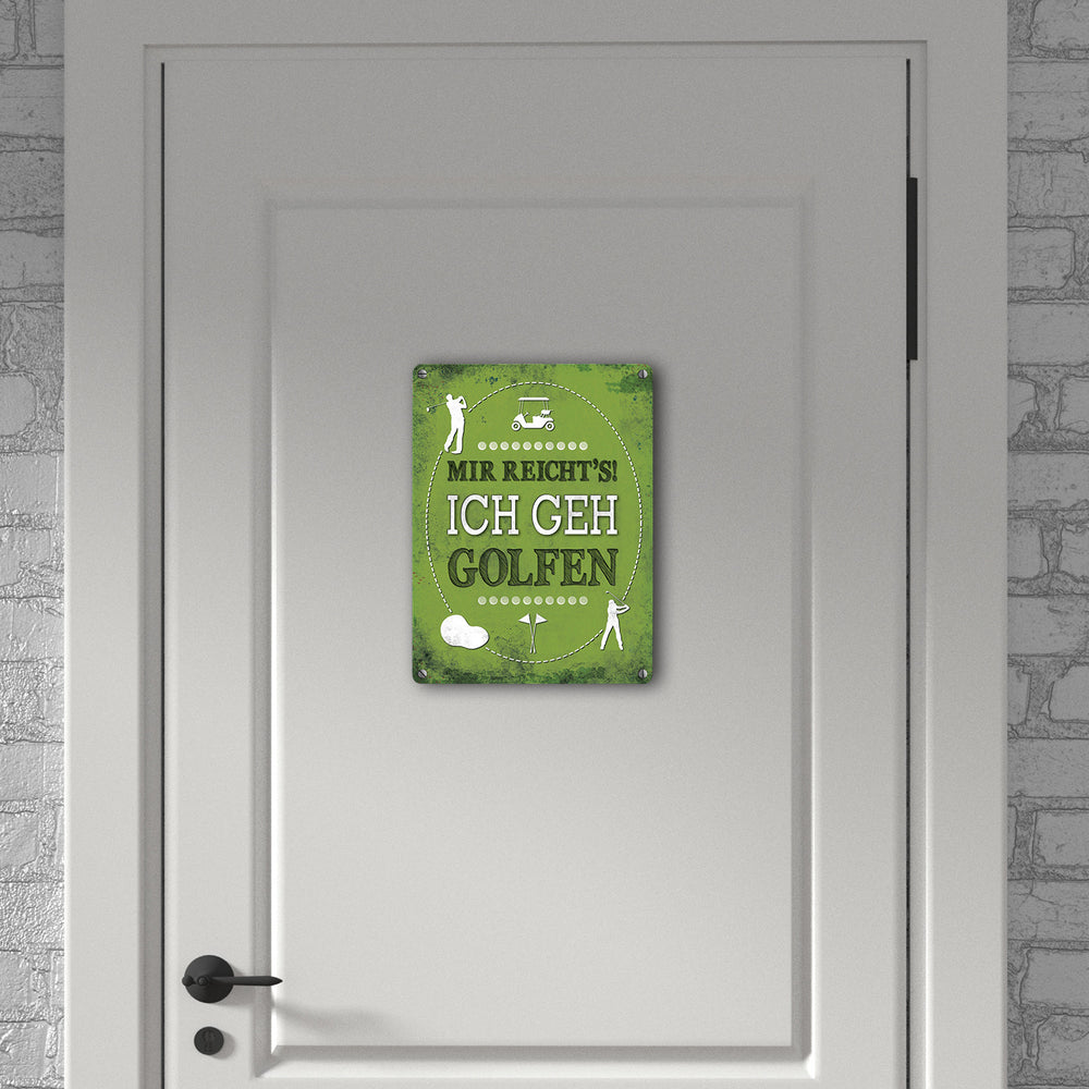 Metallschild mit Spruch: Mir reicht's! Ich geh golfen