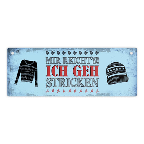 Metallschild mit Spruch: Mir reicht's! Ich geh stricken