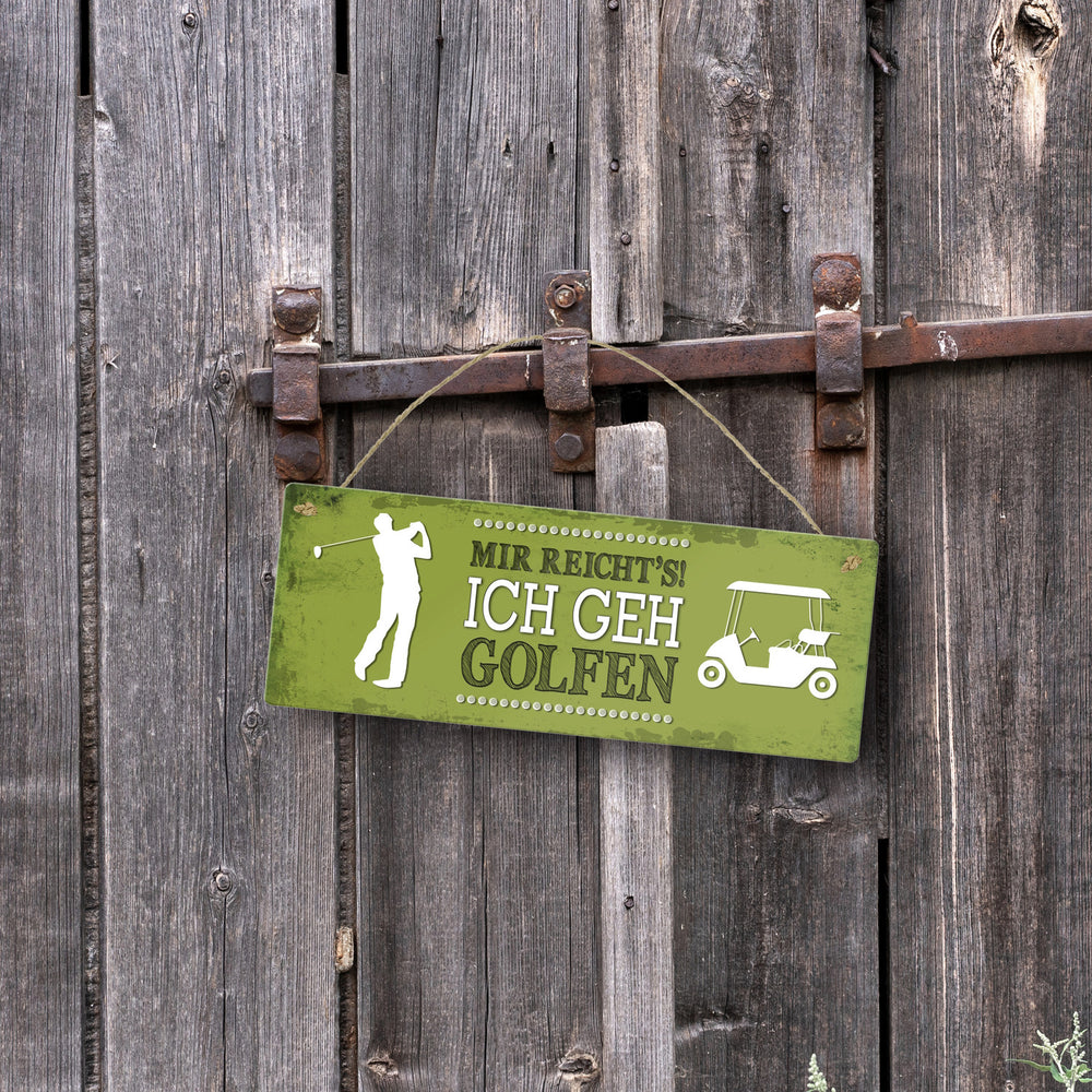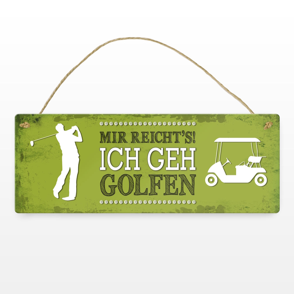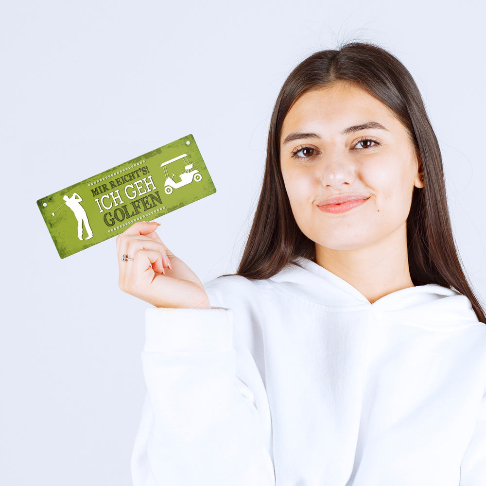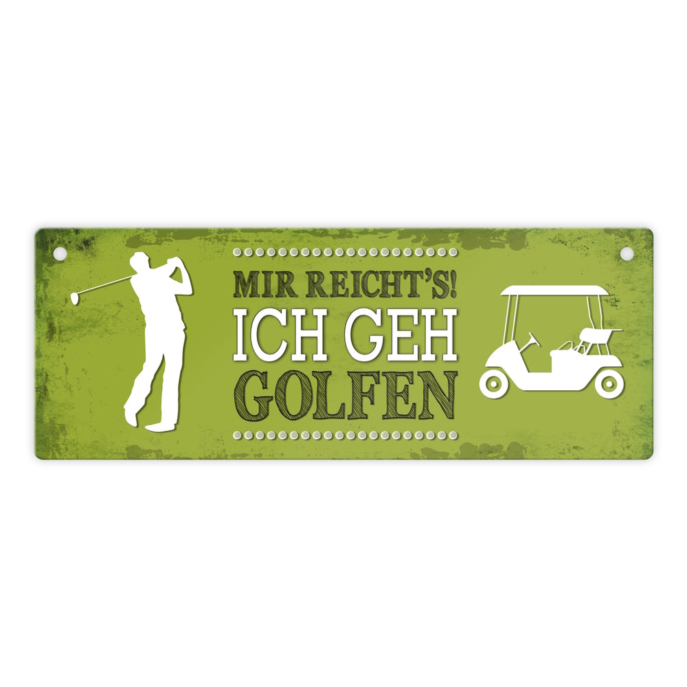 - 1x Metallschild mit Spruch: Mir reicht's! Ich geh golfen in der gewählten Größe