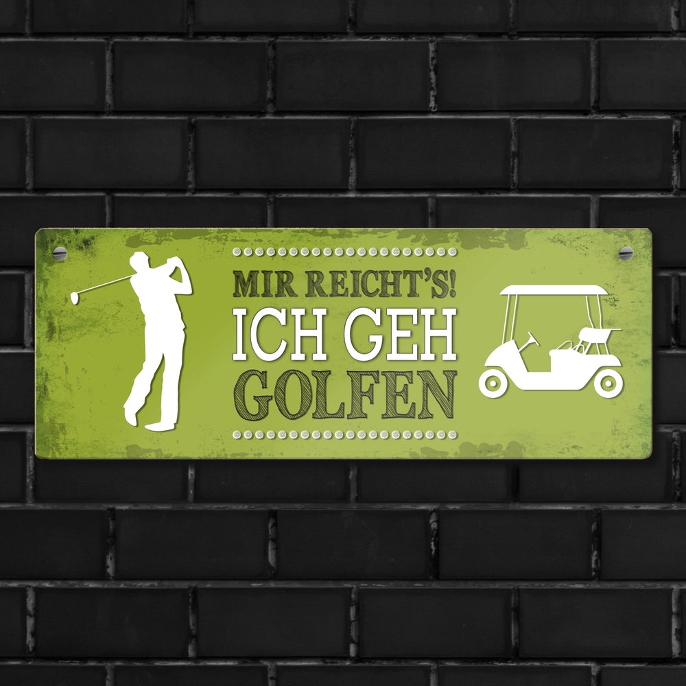 Metallschild mit Spruch: Mir reicht's! Ich geh golfen