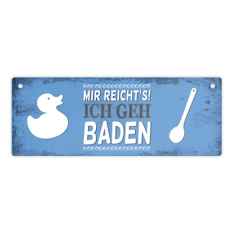 Metallschild mit Spruch: Mir reicht's! Ich geh baden