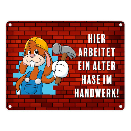 Alter Hase im Handwerk Bauarbeiter Metallschild mit Spruch
