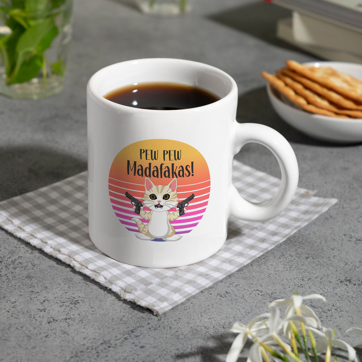 PEW PEW Madafakas Kaffeebecher mit lustigem Katzen Motiv