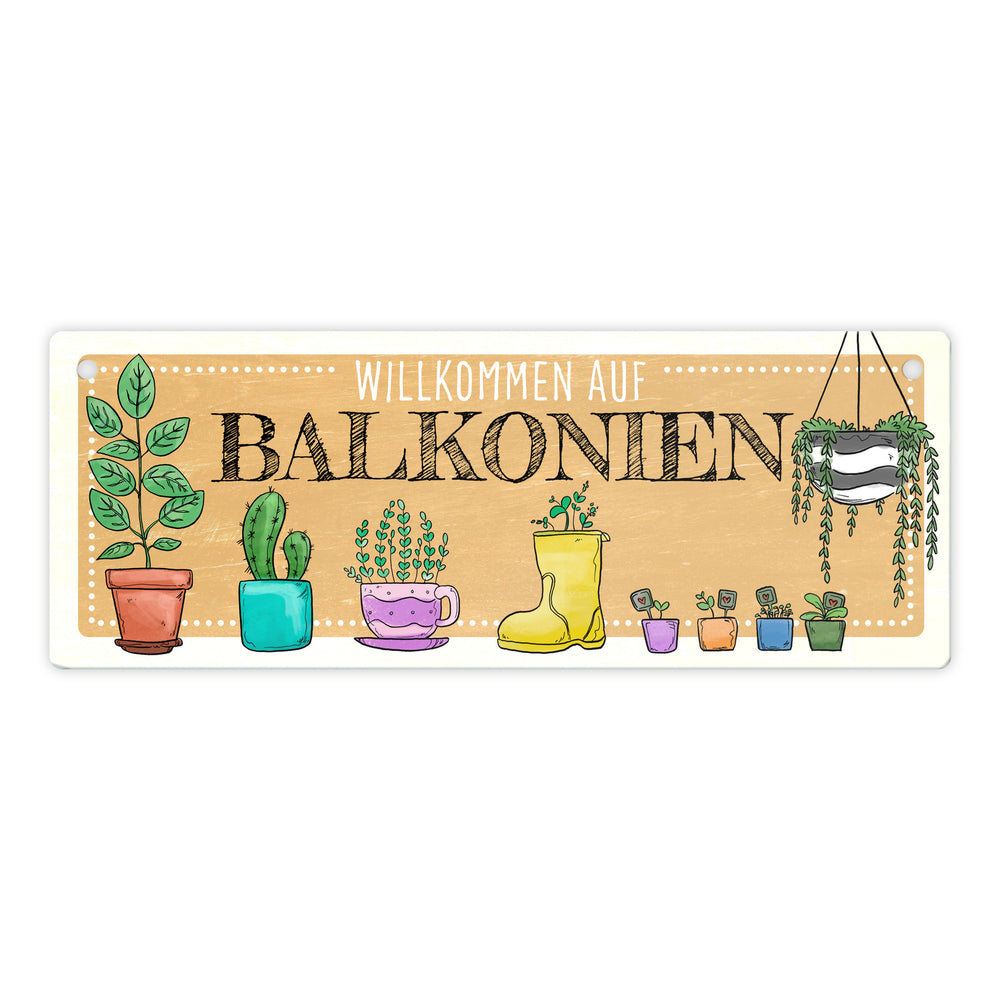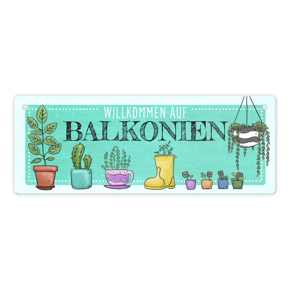 - 1x Willkommen auf Balkonien Metallschild in türkis in der gewählten Größe
