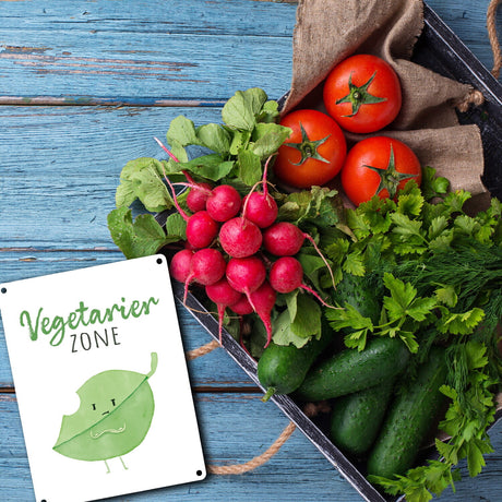 Ab €12,95Grundpreis /Nicht verfügbarAuf LagerBlatt Metallschild in 15x20 cm mit Spruch Vegetarier Zone