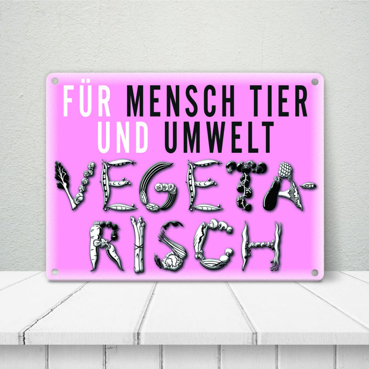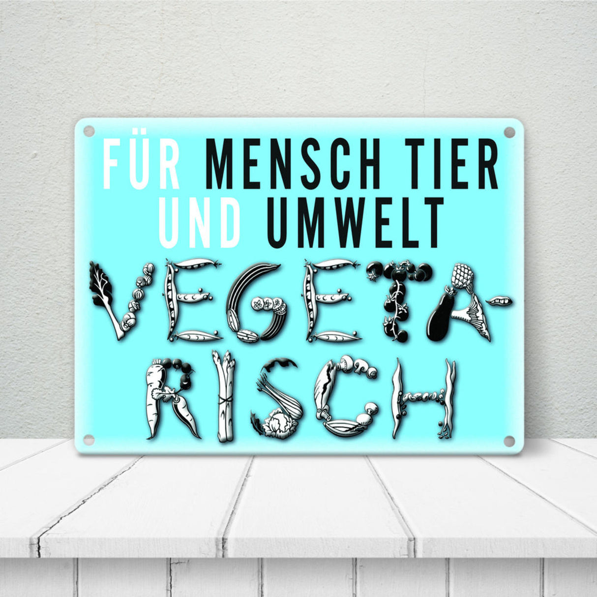 - Metallschilder zum Thema Vegetarier eigenen sich super als weises Dekogeschenk zum Geburtstag für einen Vegetarier.